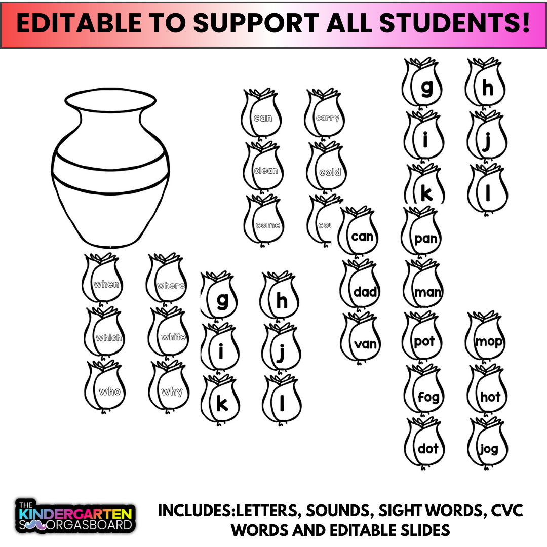 Customize the flowers to practice any phonics skills