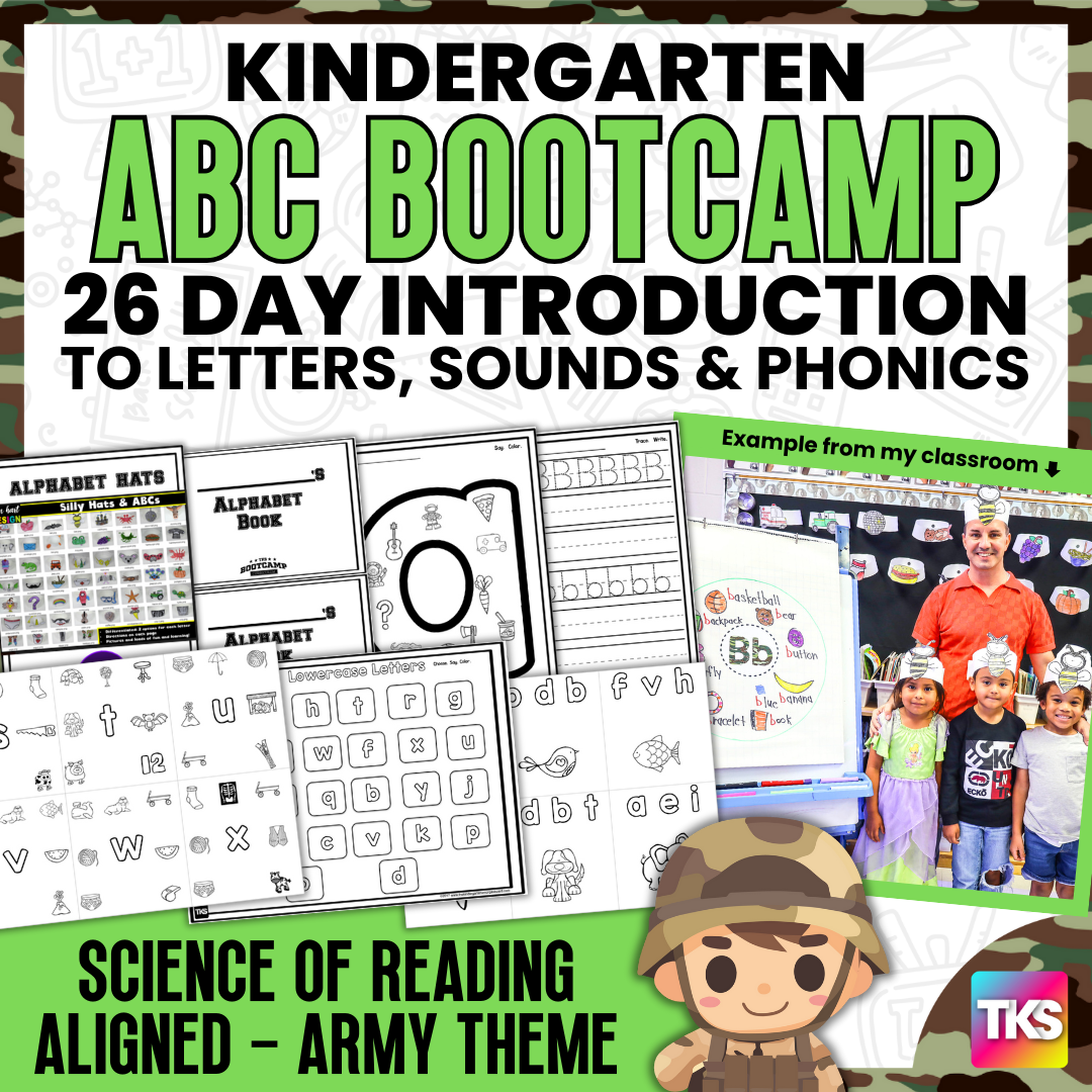 ABC Bootcamp® is only one part of our TKS Bootcamp Bundle which includes: ABC Bootcamp, Number Bootcamp, Shapes Bootcamp, Blends Bootcamp, Word Family Bootcamp, Vowel Bootcamp, Addition Bootcamp, Subtraction Bootcamp & Vowel Teams Bootcamp. Our Bundles are discounted to 25% off the regular price of each product and are available in all 5 themes.