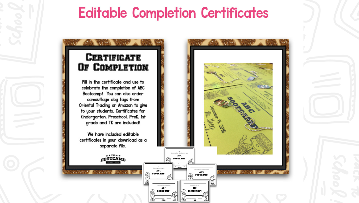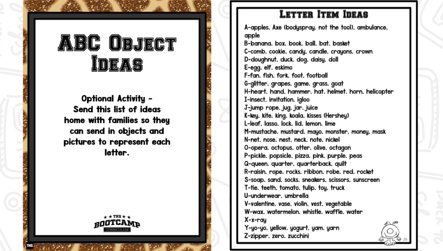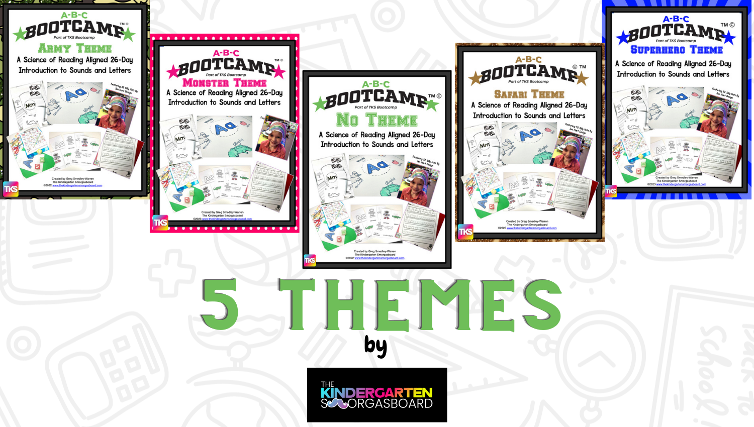 ABC Bootcamp® is only one part of our TKS Bootcamp Bundle which includes: ABC Bootcamp, Number Bootcamp, Shapes Bootcamp, Blends Bootcamp, Word Family Bootcamp, Vowel Bootcamp, Addition Bootcamp, Subtraction Bootcamp & Vowel Teams Bootcamp. Our Bundles are discounted to 25% off the regular price of each product and are available in all 5 themes.