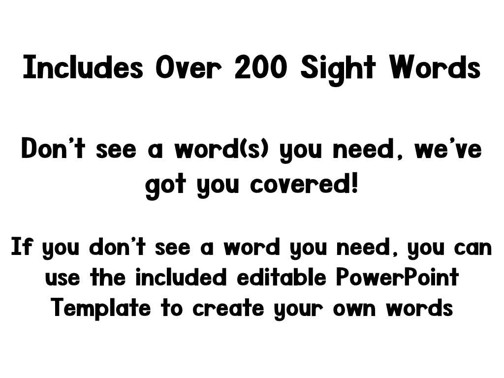 This resource includes editable slides so you can use this activity to practice and assess any skills: sight words, sounds, letters, CVC words, CVC-e words, blends, etc. You will type the words/skill you want onto the editable flowers to make this resource work for you and your students.