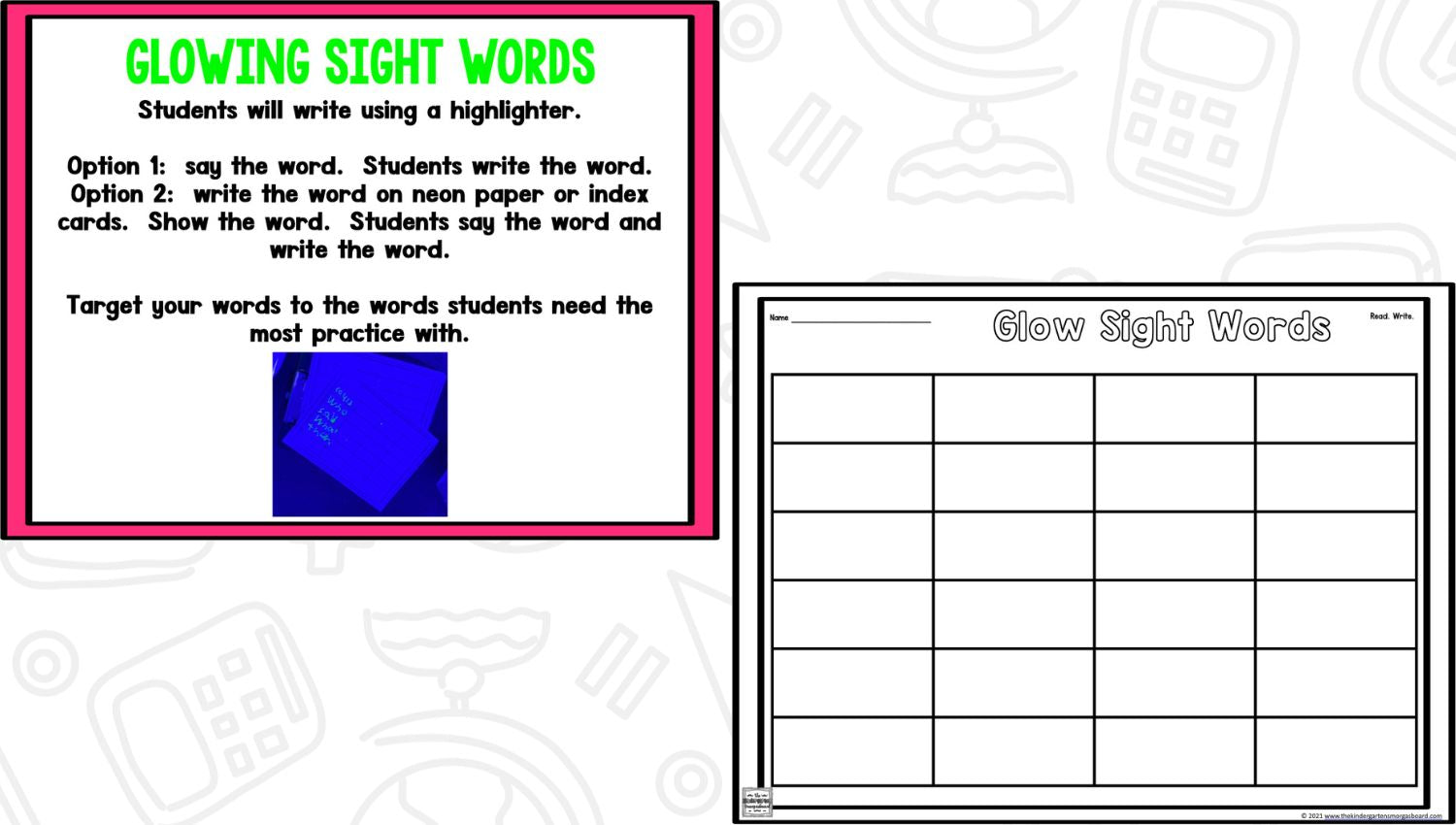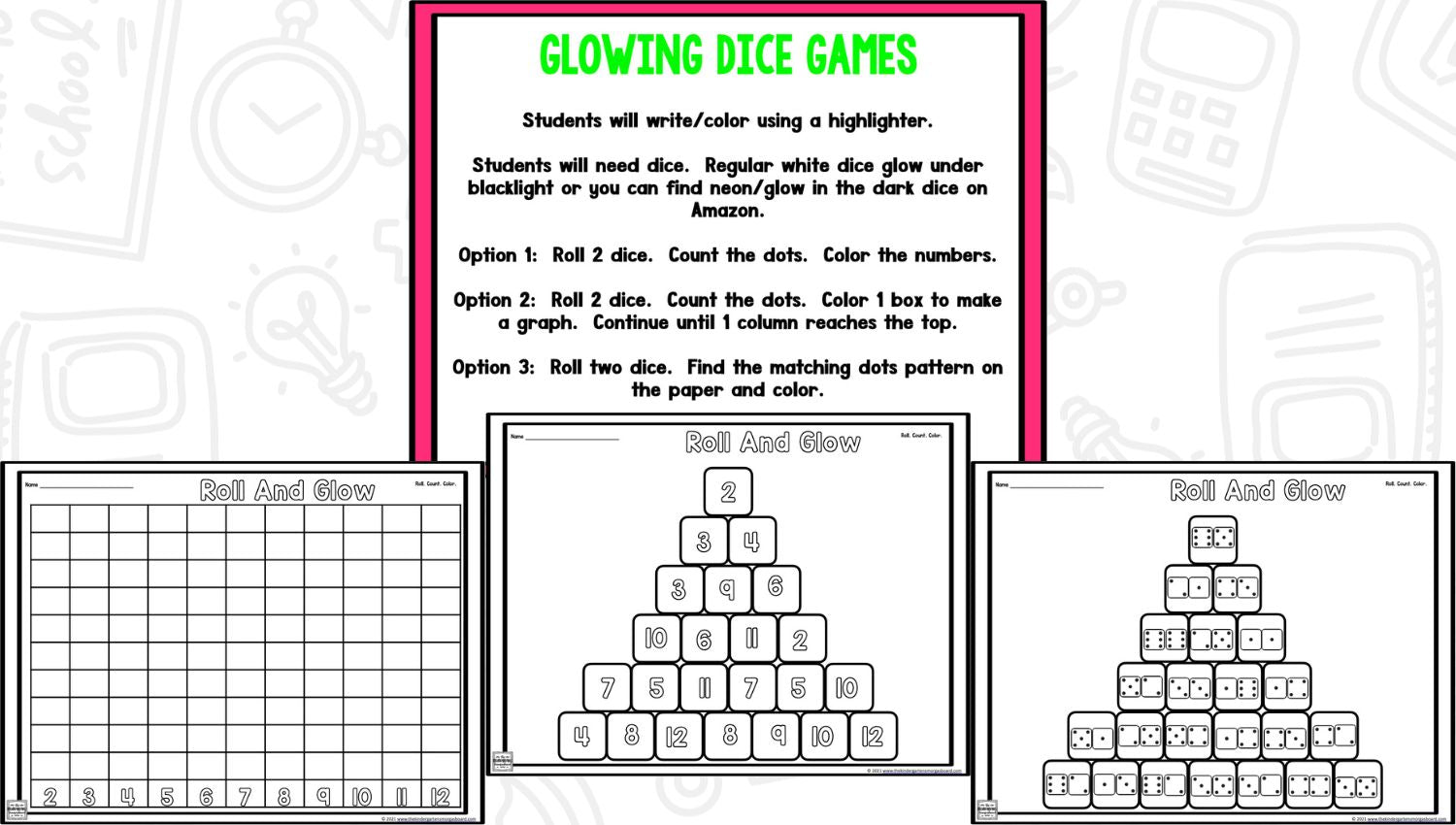 Students use a highlighter to do the work because highlighters glow under the black lights. The activities in this glow day resource are flexible and adaptable and will work in any classroom!