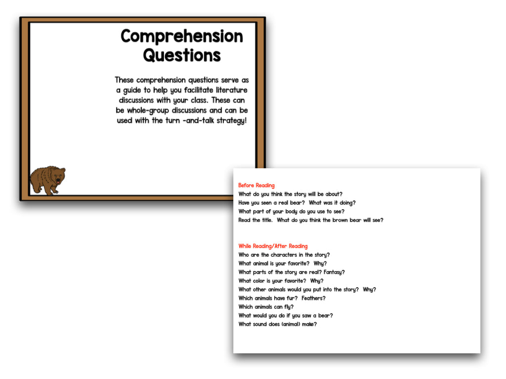 Your students will love Brown Bear Brown Bear What Do You See?! This must-read book teaches comprehension skills and is great for learning colors and sequencing a story. This science of reading-aligned comprehension resource includes comprehension lessons and activities to help students understand a story. Quick and easy setup plus clear directions make these activities perfect for back to school.