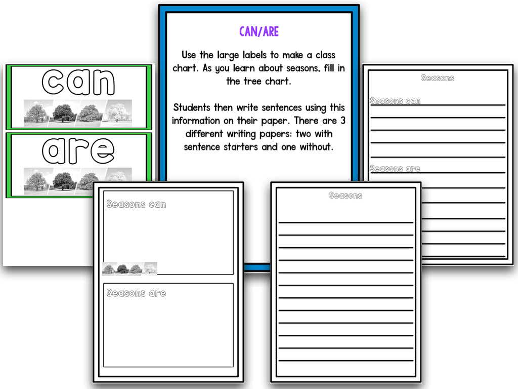 Learn about the four seasons and how seasons change with these engaging, language-building activities! This seasons research project includes low-prep graphic organizers and writing activities to discuss and learn about how animals, plants, and people adapt for each season!