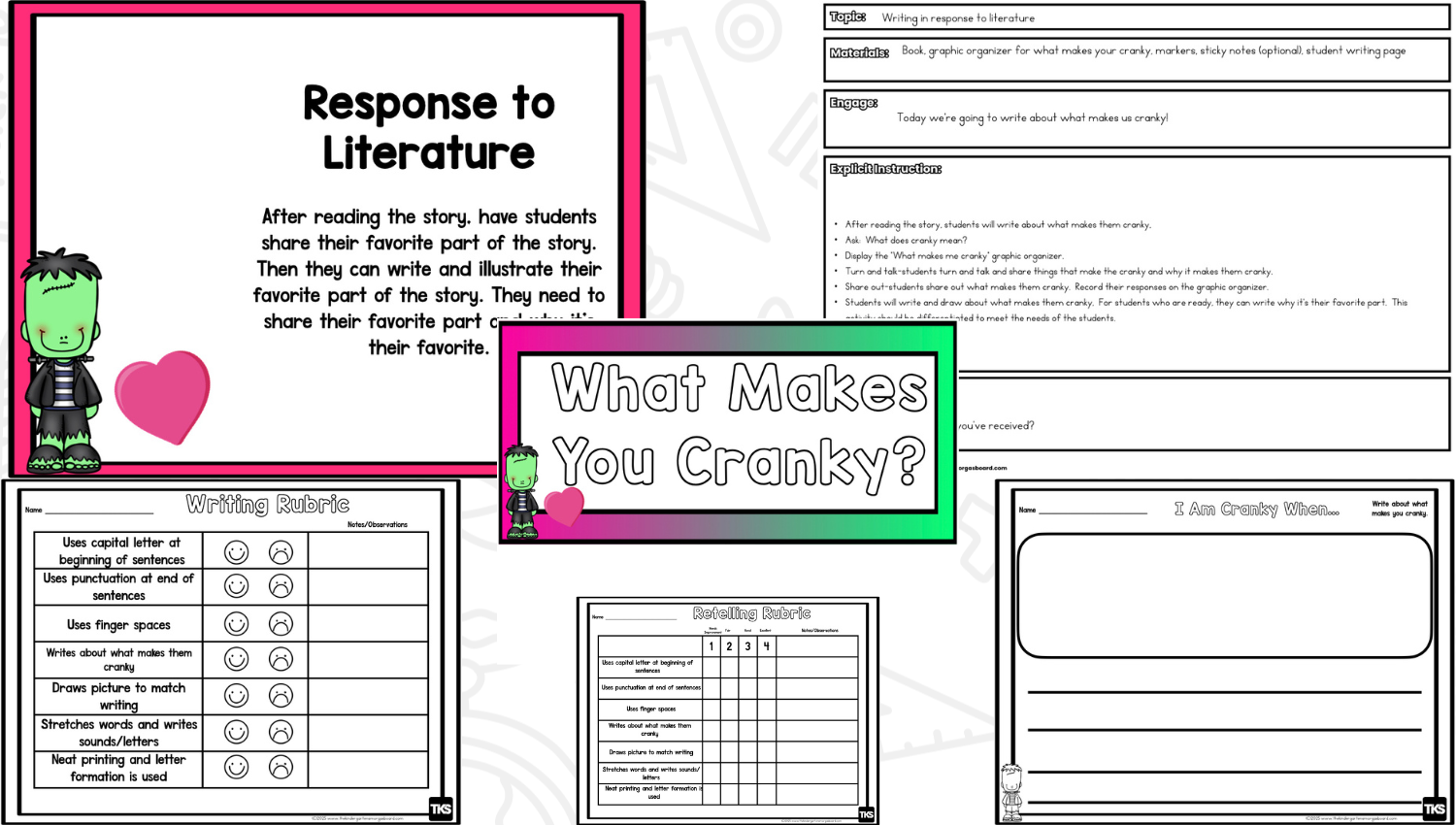 Your students will love making connections to the story, retelling the story, working on compound words, and writing about what makes them cranky!