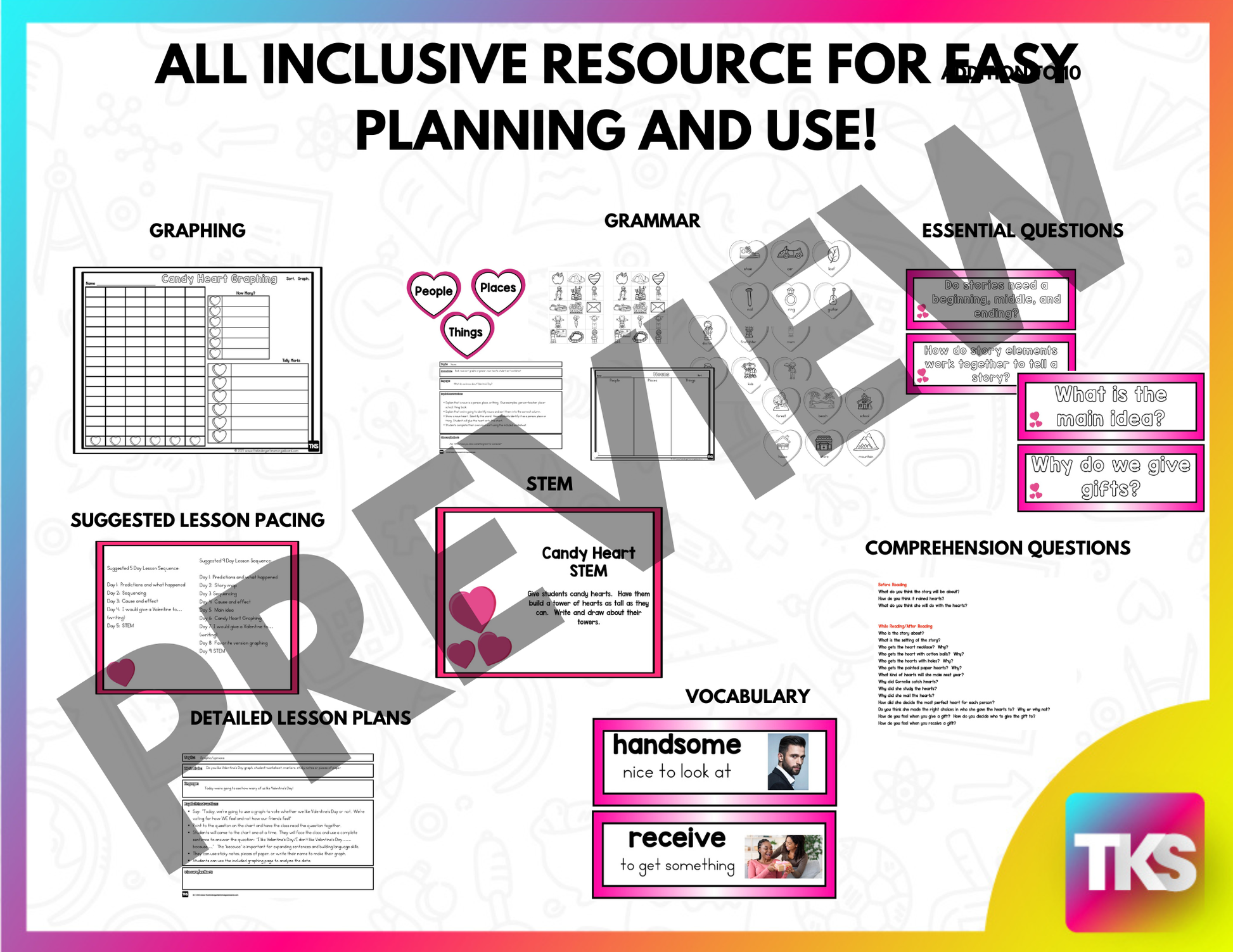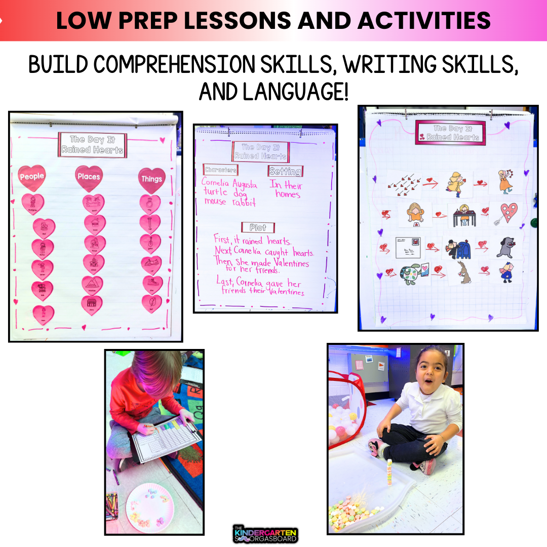 Celebrate Valentine's Day with The Day It Rained Hearts. This science-of-reading-aligned comprehension resource has math and comprehension activities that will make your February lesson plans easier! Includes Valentine's Day activities for sequencing, retelling, STEM, and more! The included writing activities make a great Valentine's Day bulletin board!