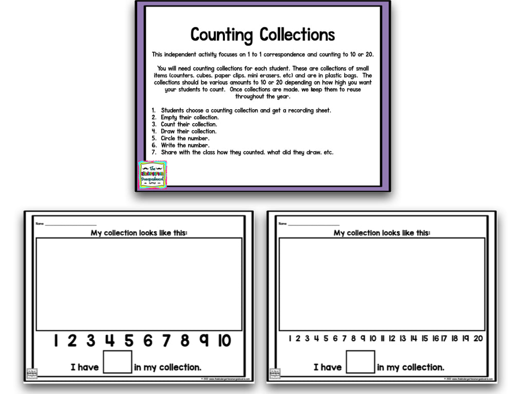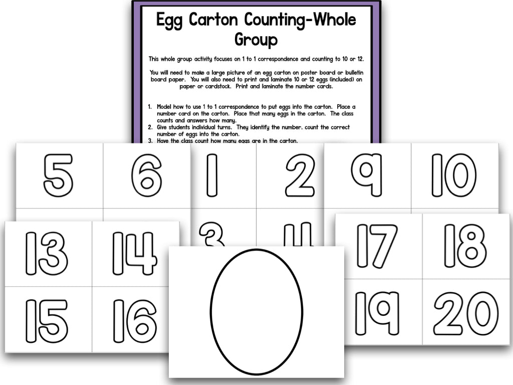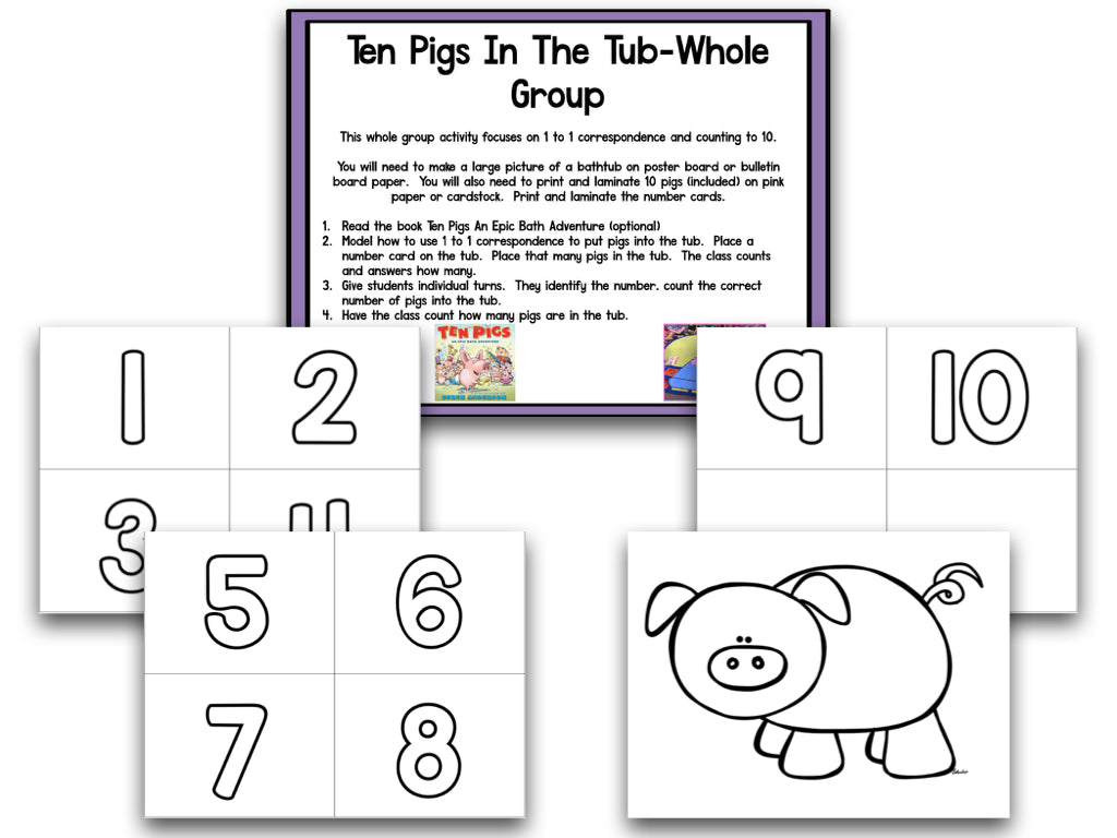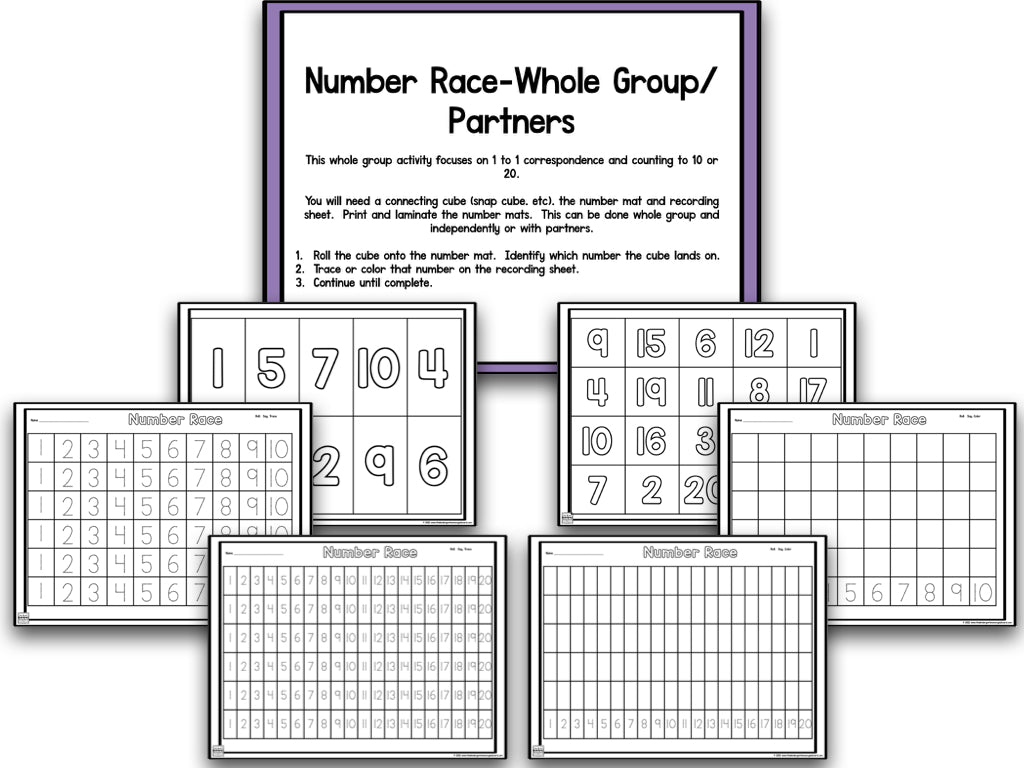 Make teaching number recognition, counting, and one-to-one correspondence fun with these engaging, hands-on math activities! This set includes low-prep lessons perfect for exploring ten numbers and counting skills. The quick and easy whole group, independent activities, partner games, and small group lessons make this an all-inclusive math resource!