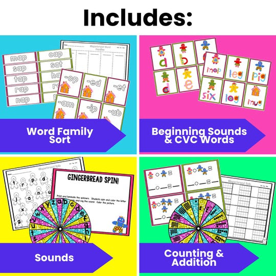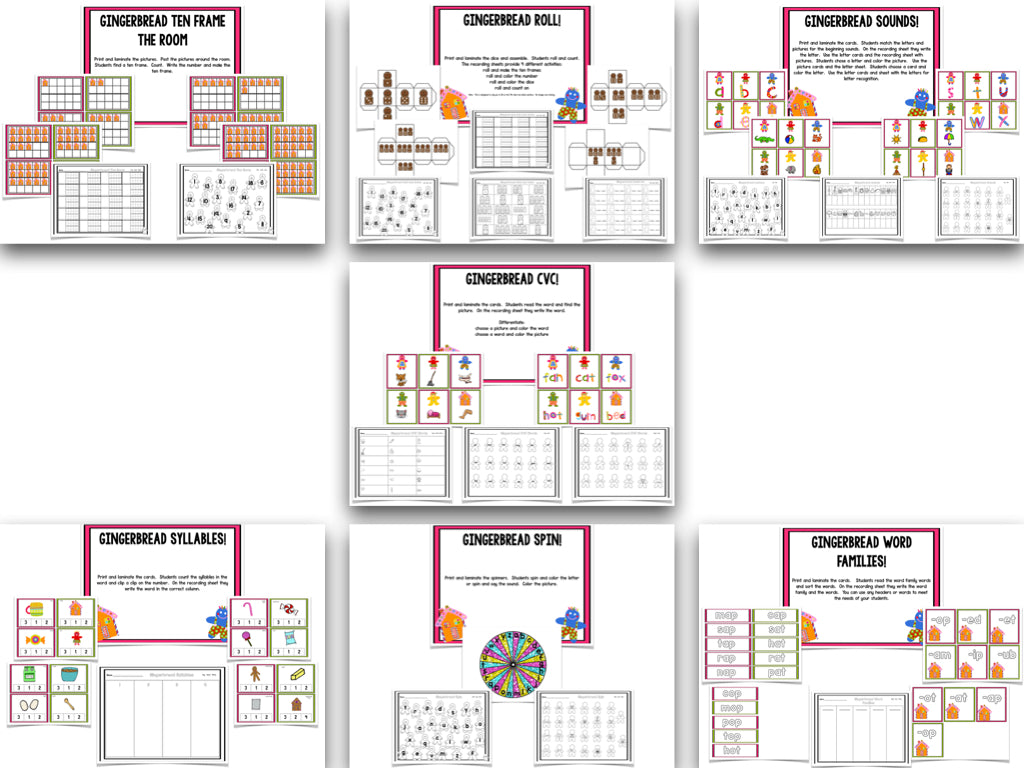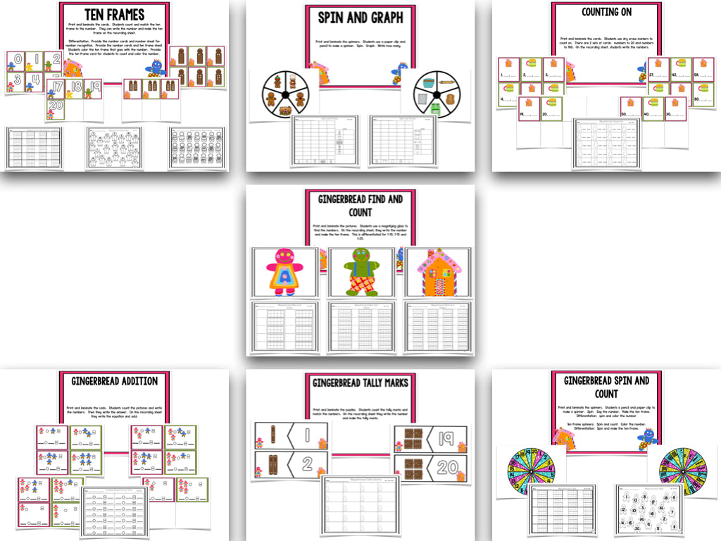 Make December math and literacy centers fun with this Christmas and gingerbread resource! This set includes 15 different games and activities with a fun gingerbread theme so students can practice their math and literacy skills.