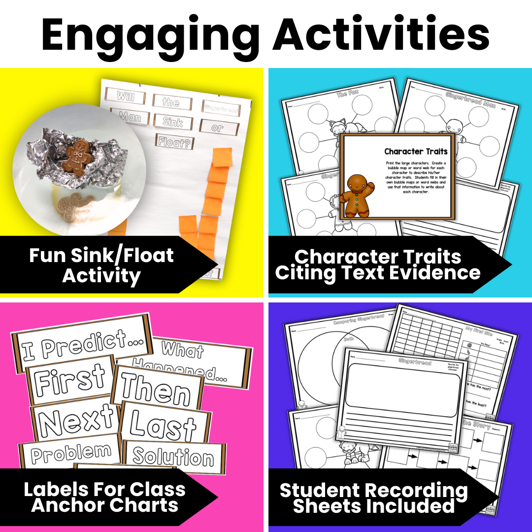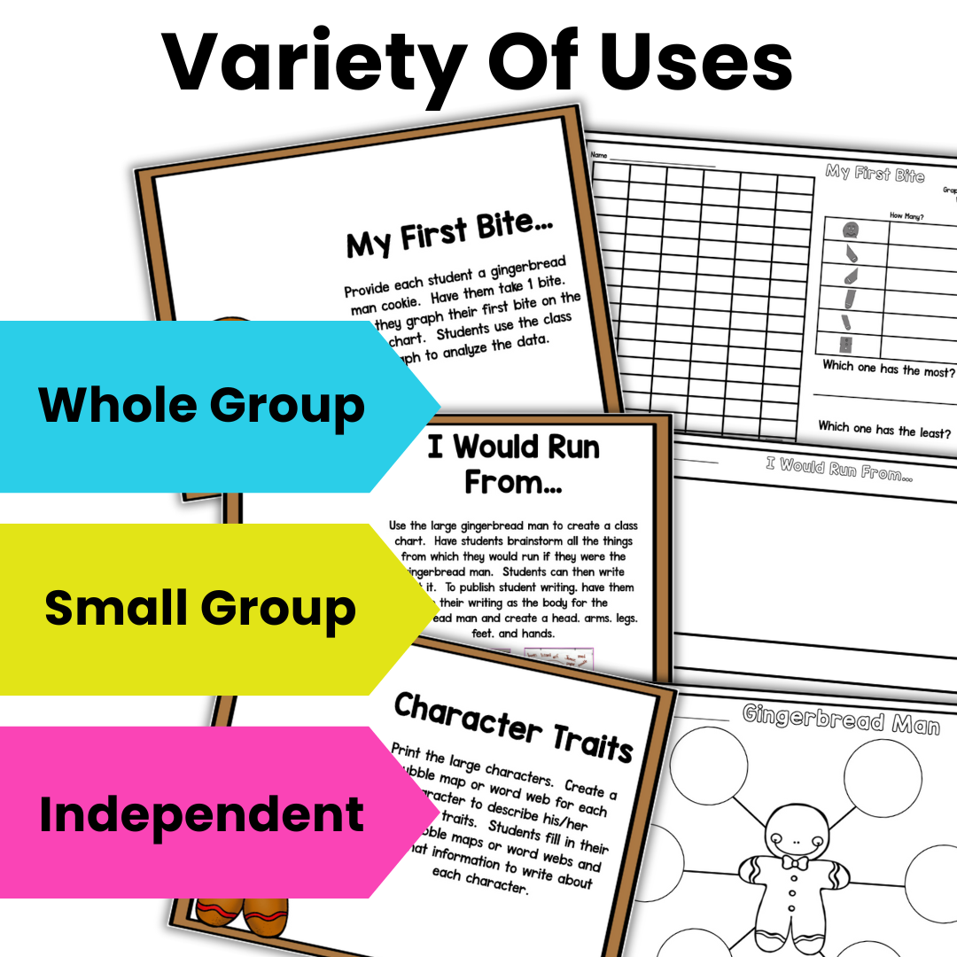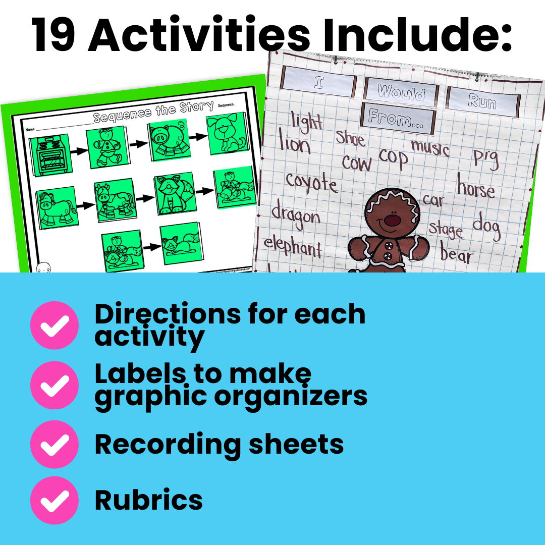 Your students will love making connections to the story, sequencing the story, helping the gingerbread man cross the river, graphing their first bite of a gingerbread cookie, and much more!