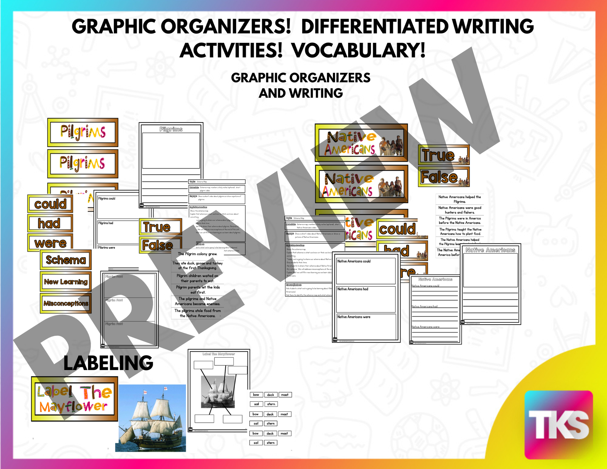 - Thanksgiving lessons and graphic organizers (questions/answers, customs, etc)
