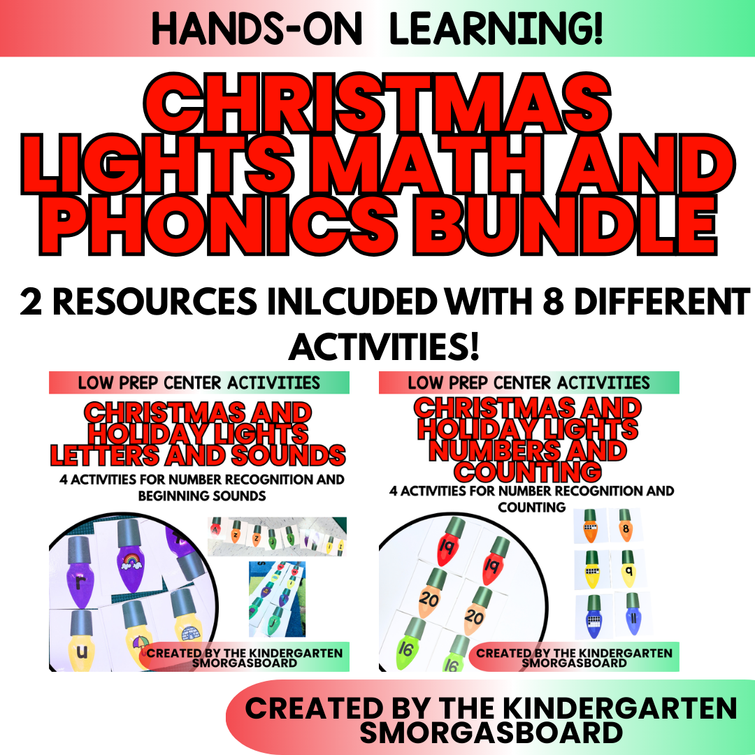 This is a bundle of our Christmas Lights resources. You will get our Christmas Lights Letters and Sounds resource, which includes Christmas phonics activities for letters and sounds. You will also receive our Christmas Lights Math resources, which include numbers and counting.