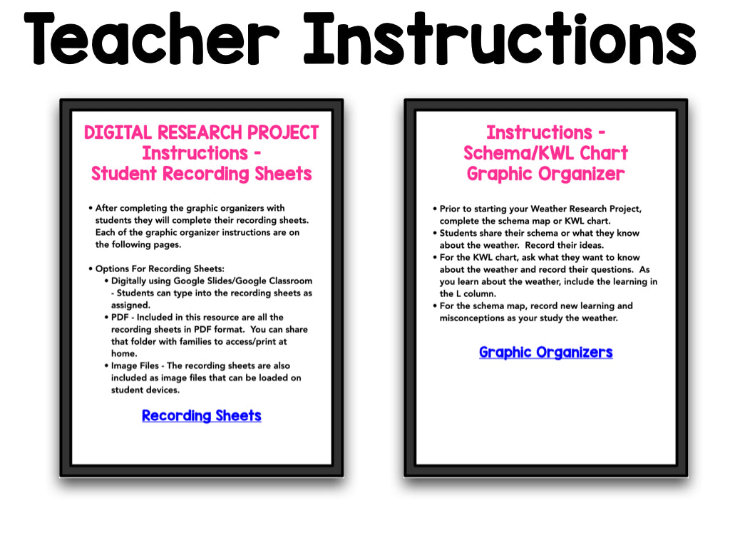 This digital Weather Research Project will engage students by making research and writing developmentally appropriate in the classroom and in distance/remote learning. It is designed so students can research and write different elements of our weather including weather words, the sun, the wind, tornadoes, clouds, rain, snow, thunderstorms, meteorologists, and the water cycle.