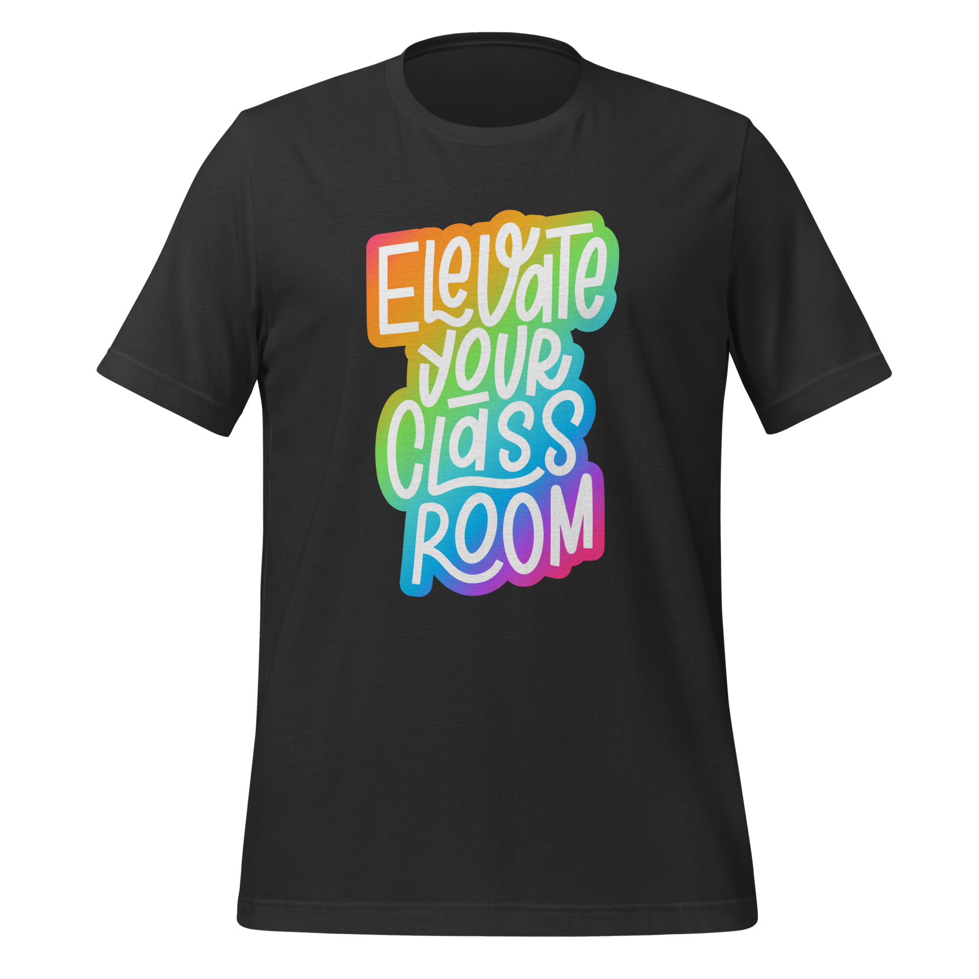 Brighten up your teacher wardrobe with our bold and colorful Elevate Your Classroom tee! Featuring a vibrant rainbow gradient and playful hand-lettering, this shirt is all about bringing energy, inspiration, and positivity into your classroom and beyond. Printed on a soft, premium dark gray unisex tee, it’s perfect for casual Fridays, conference days, or whenever you want to remind the world what you're all about—elevating education with heart and style.