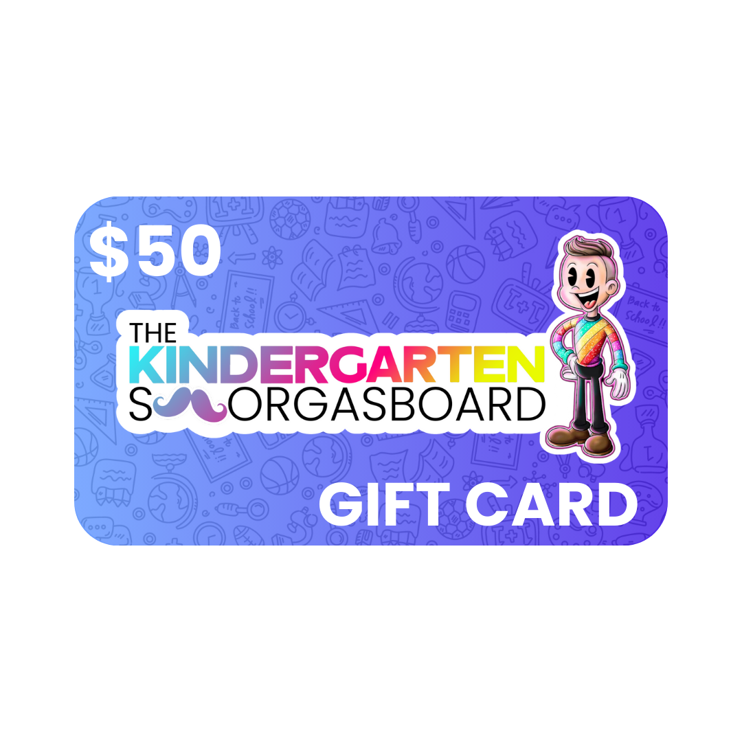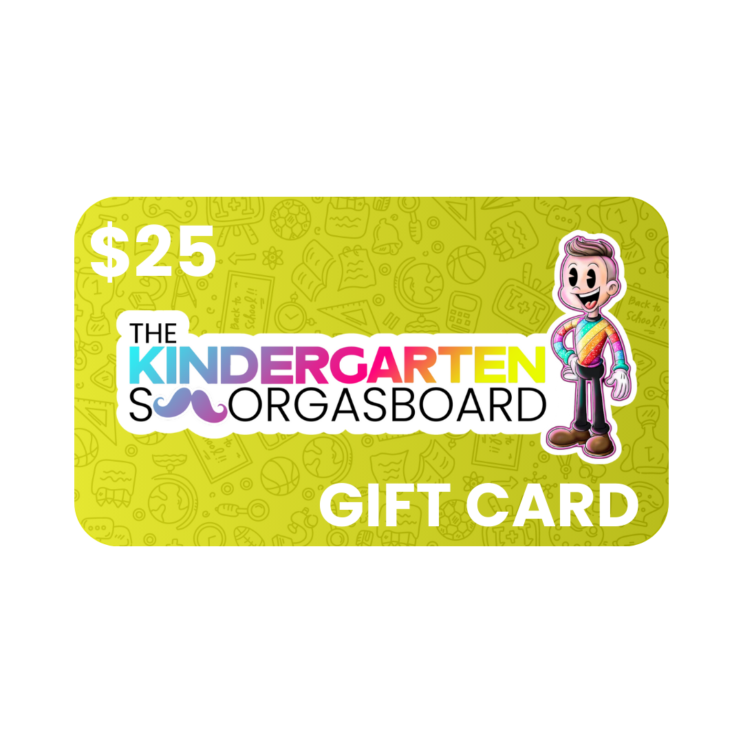 Shopping for someone else but not sure what to give them? Give them the gift of choice with a The Kindergarten Smorgasboard Online Store gift card. Available in increments of $10, $25, $50 and $100. Just click the drop down and select the amount you would like!