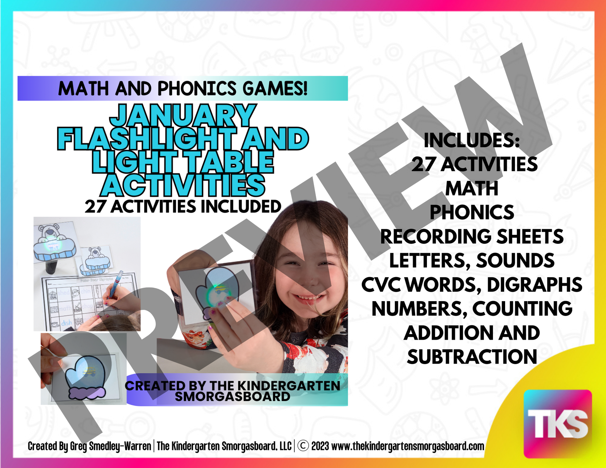 Light up your PHONICS and math centers with these flashlight activities and light table activities! A kid and teacher FAVORITE! Make practicing letters, sounds, CVC words, digraphs, numbers, counting, addition, and subtraction fun and interactive.
