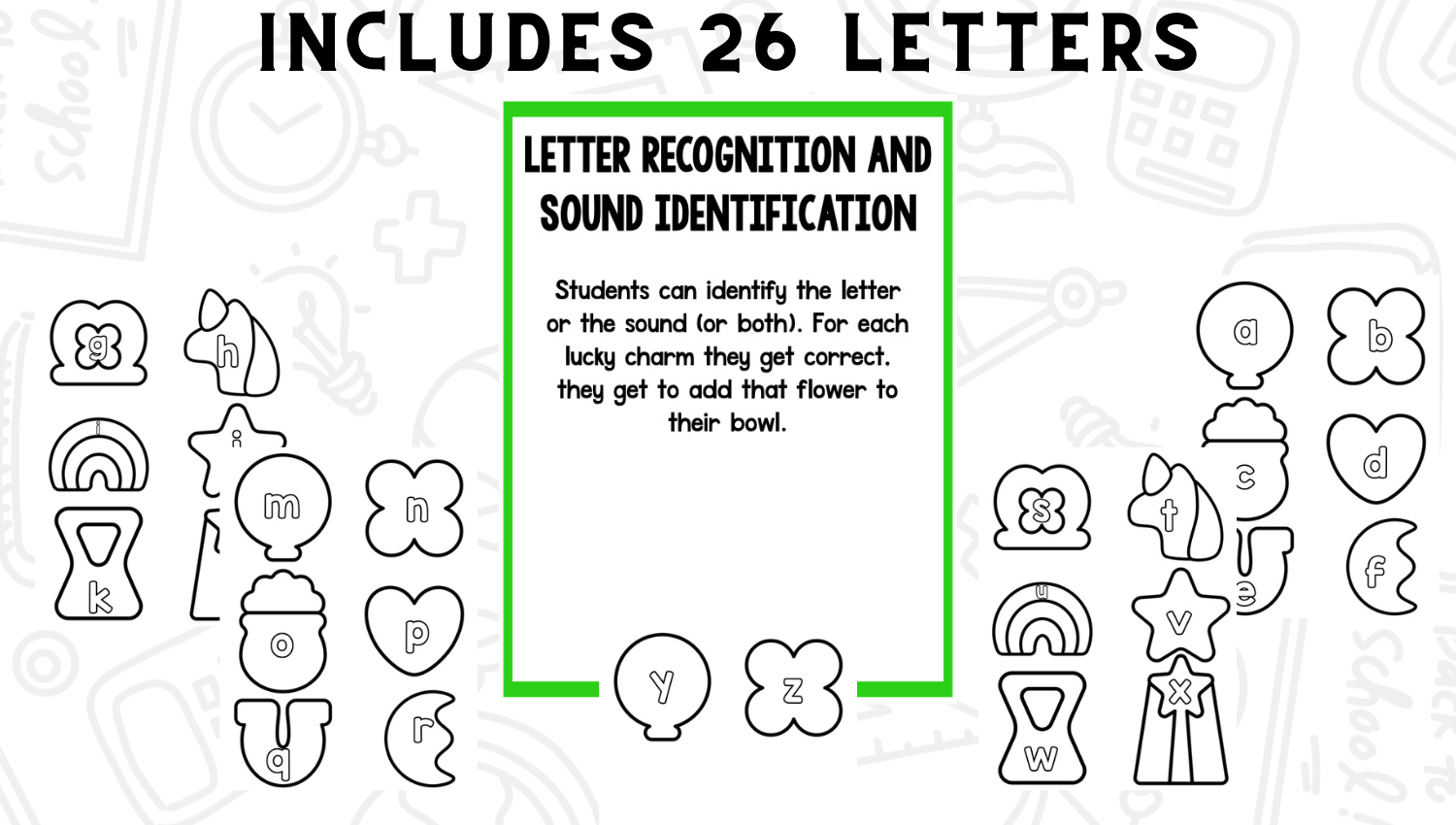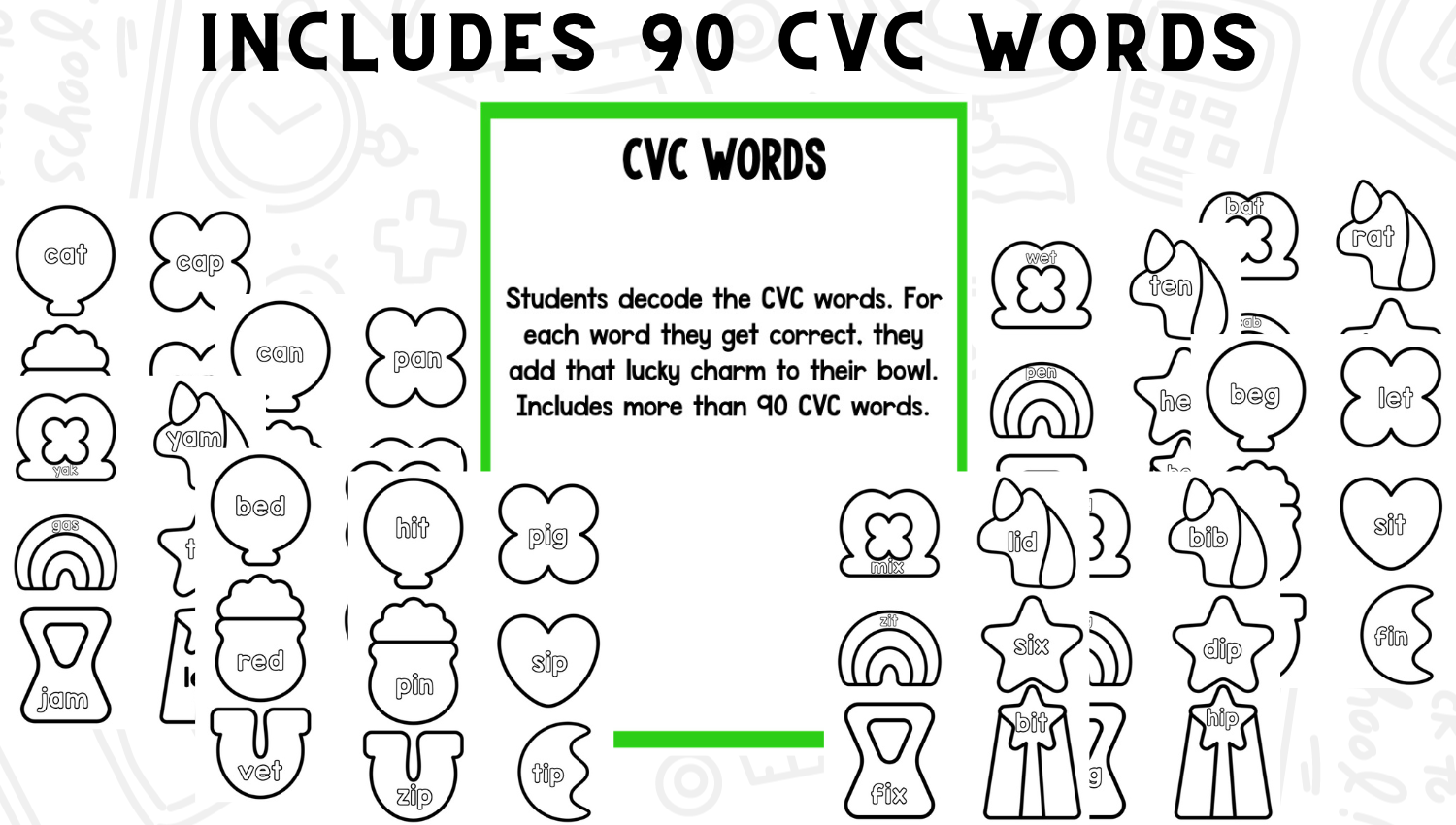 This resource includes editable slides so you can use this activity to practice and assess any skills: sight words, sounds, letters, CVC words, CVC-e words, blends, etc. You will type the words/skill you want onto the editable lucky charms to make this resource work for you and your students.