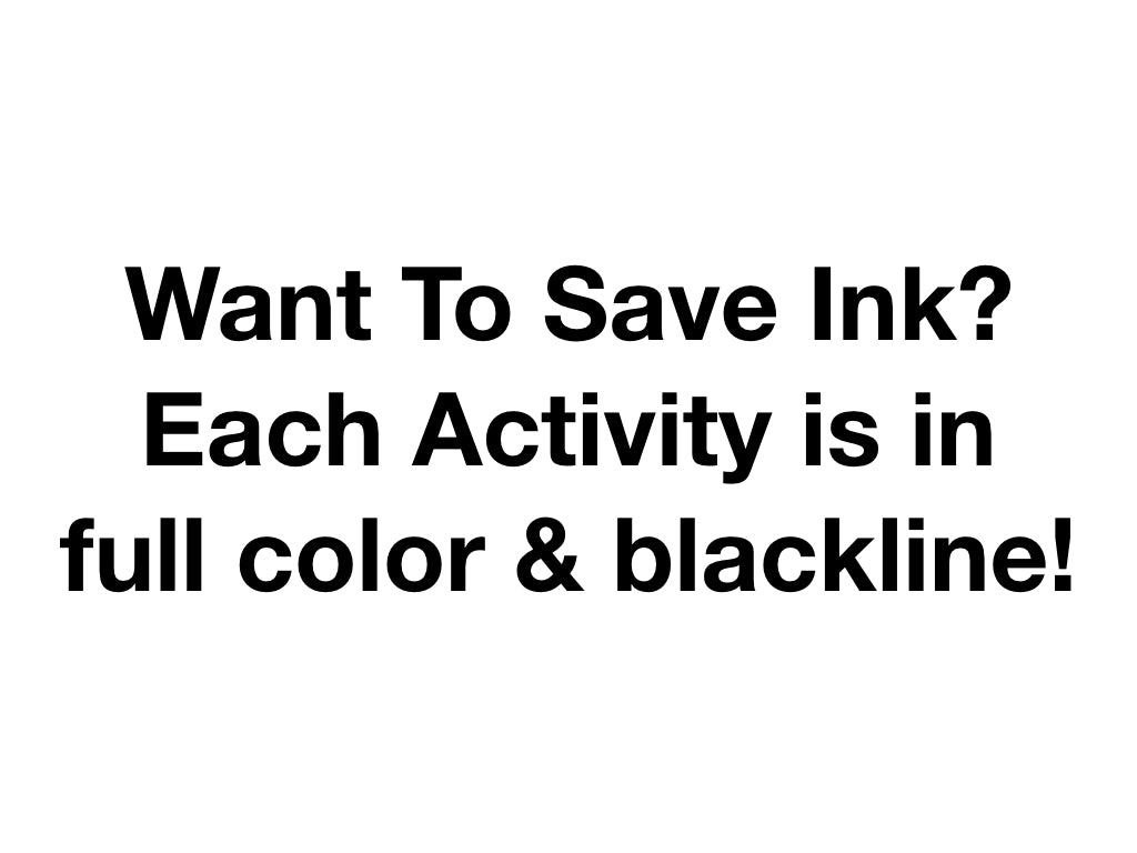 Each of the activities are provided in full color and in blackline. So, if you choose to save ink, you can just use the blackline option!