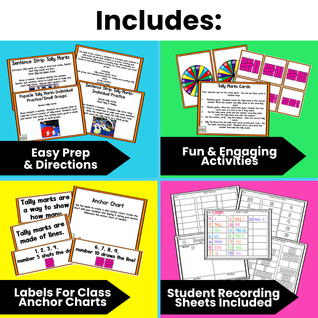 This Math It Up! creation is designed to introduce your students to tally marks all will allow students to practice counting and representing tally marks in a variety of ways. Also included are hands-on and differentiated activities for math centers and small groups.