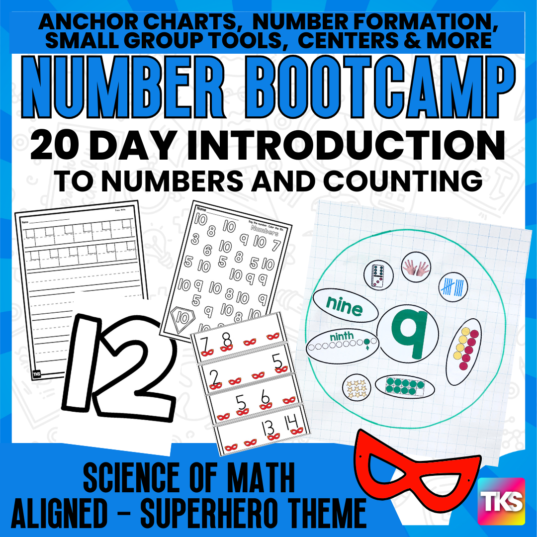 Make teaching numbers and counting to 20 fun and effective using our research-based, classroom-proven Number Bootcamp! This fun, hands-on kindergarten math unit includes everything you need to teach students numbers, counting, answering how many, number writing, and more!
