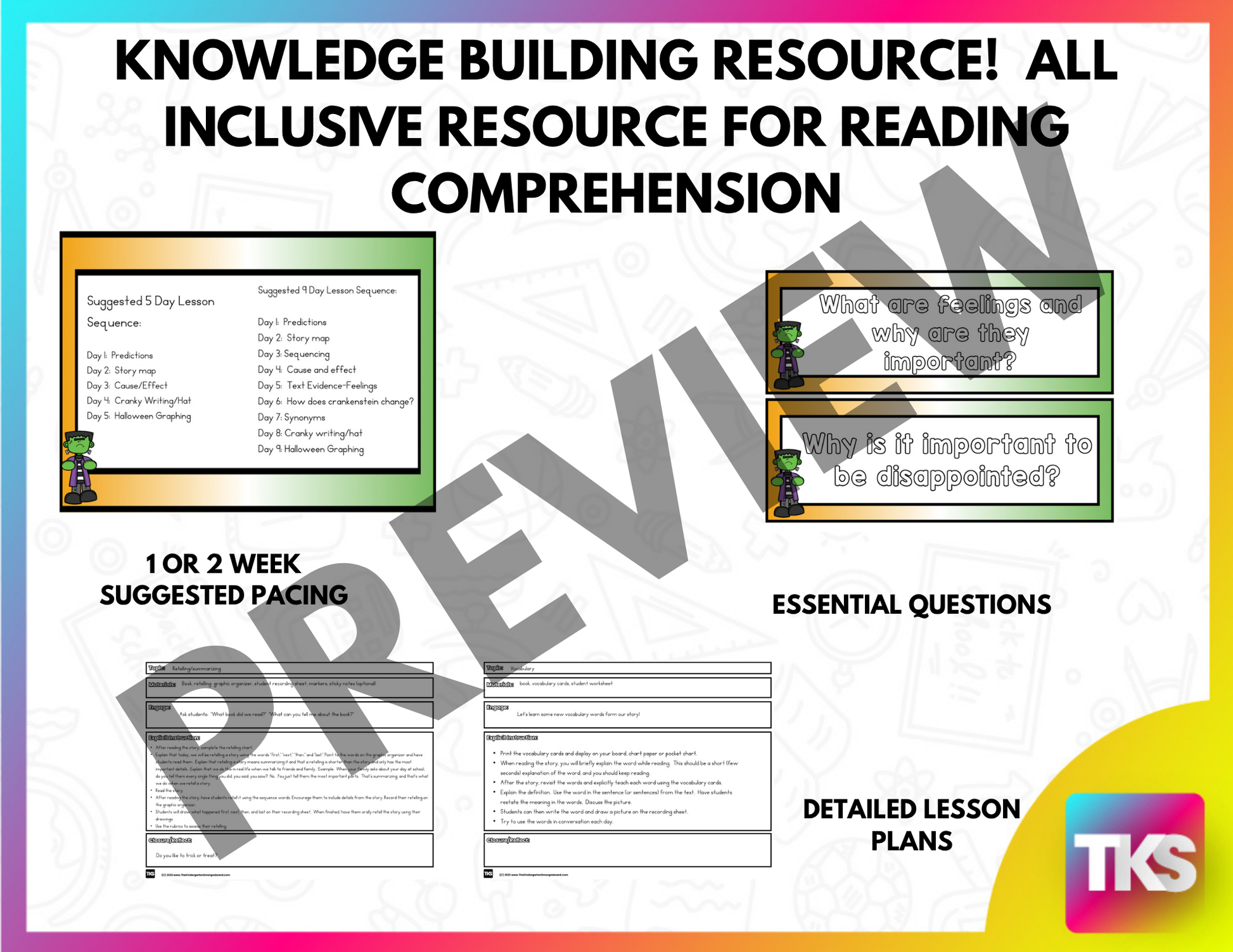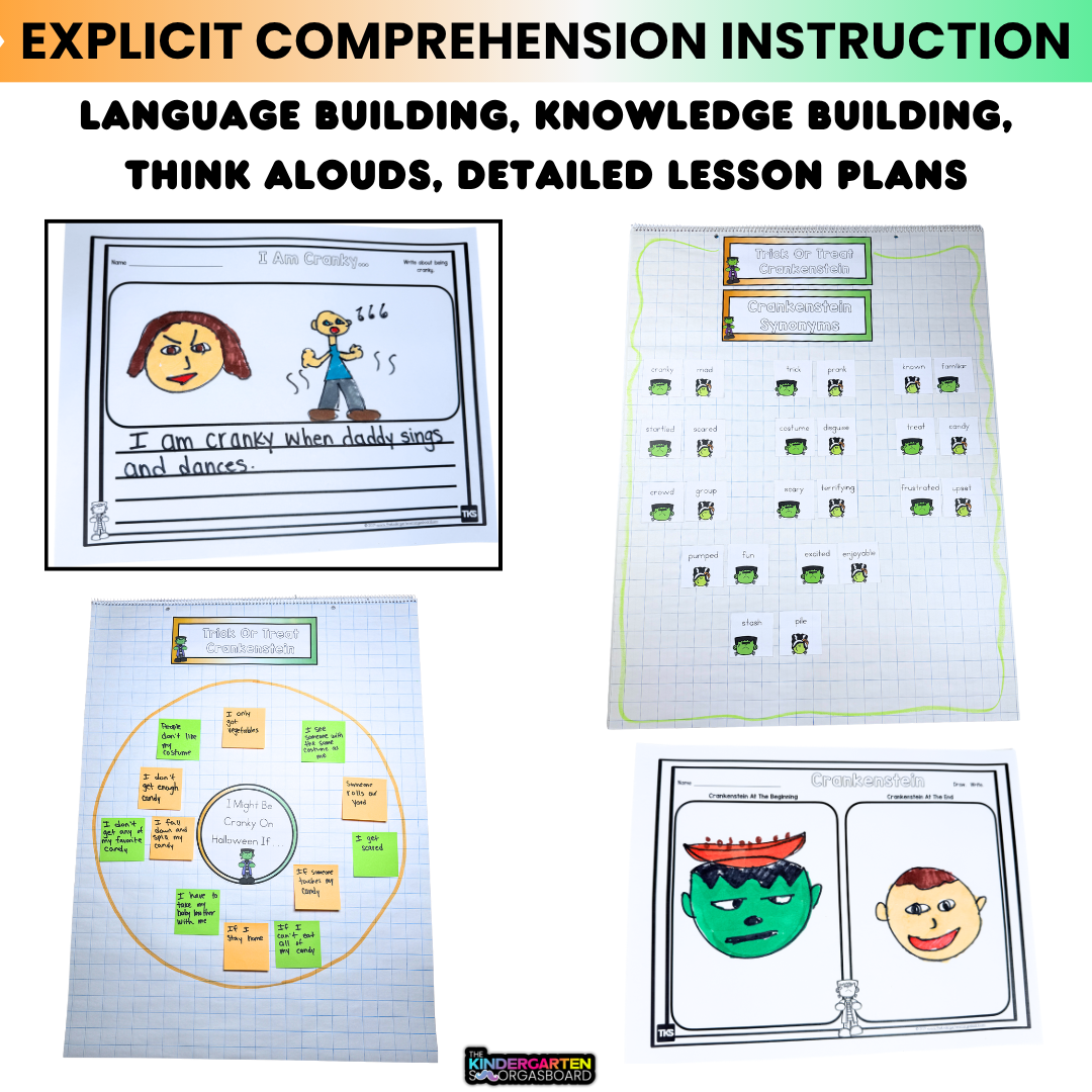 Your students will love the book Trick or Treat Crankenstein! This Halloween must-read story explicitly teaches comprehension skills and is excellent for many comprehension lessons. Students will build language and vocabulary while reading about Halloween, disappointment & friendship. This science of reading-aligned comprehension resource includes comprehension lessons and activities to help students understand a story. Quick and easy setup, plus clear directions, make these activities perfect for fall!
