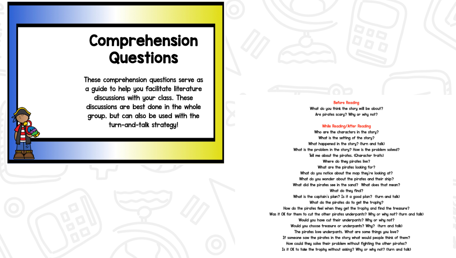 Looking for pirate activities for kindergarten and first grade? This Pirates Love Underpants unit is perfect for Talk Like A Pirate Day! This literacy and math resource has pirate activities for comprehension, writing, art, graphing, and more! More than 80 pages of classroom-tested, low prep resources to make planning and prep less stressful so you can have fun teaching!