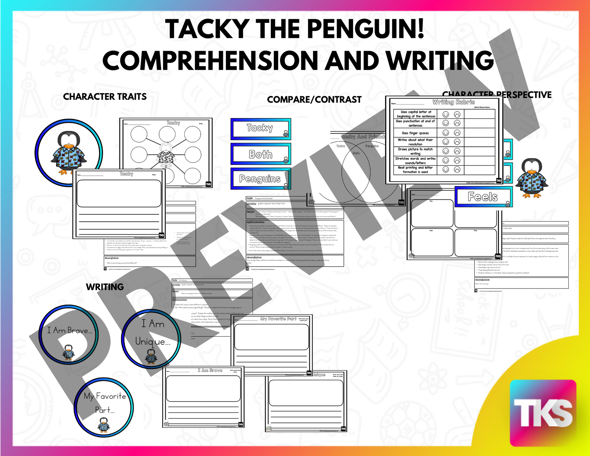 Tacky The Penguin Activities, STEM & Comprehension Worksheets