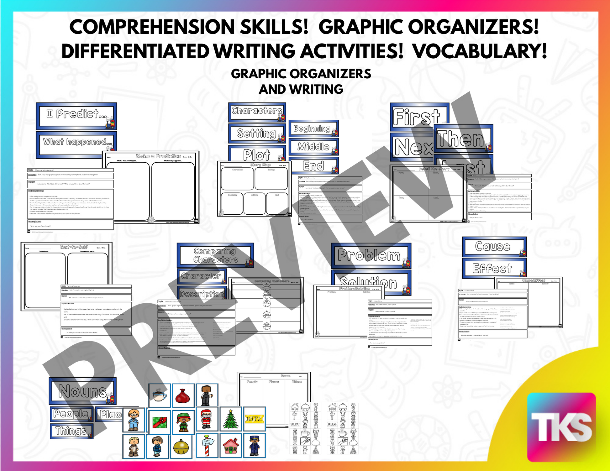 You get detailed lesson plans and 13 hands-on activities that hit literacy, math, writing, STEM, and even the five senses. Your students stay engaged, you stay sane, and everyone gets swept up in the holiday magic with less stress.