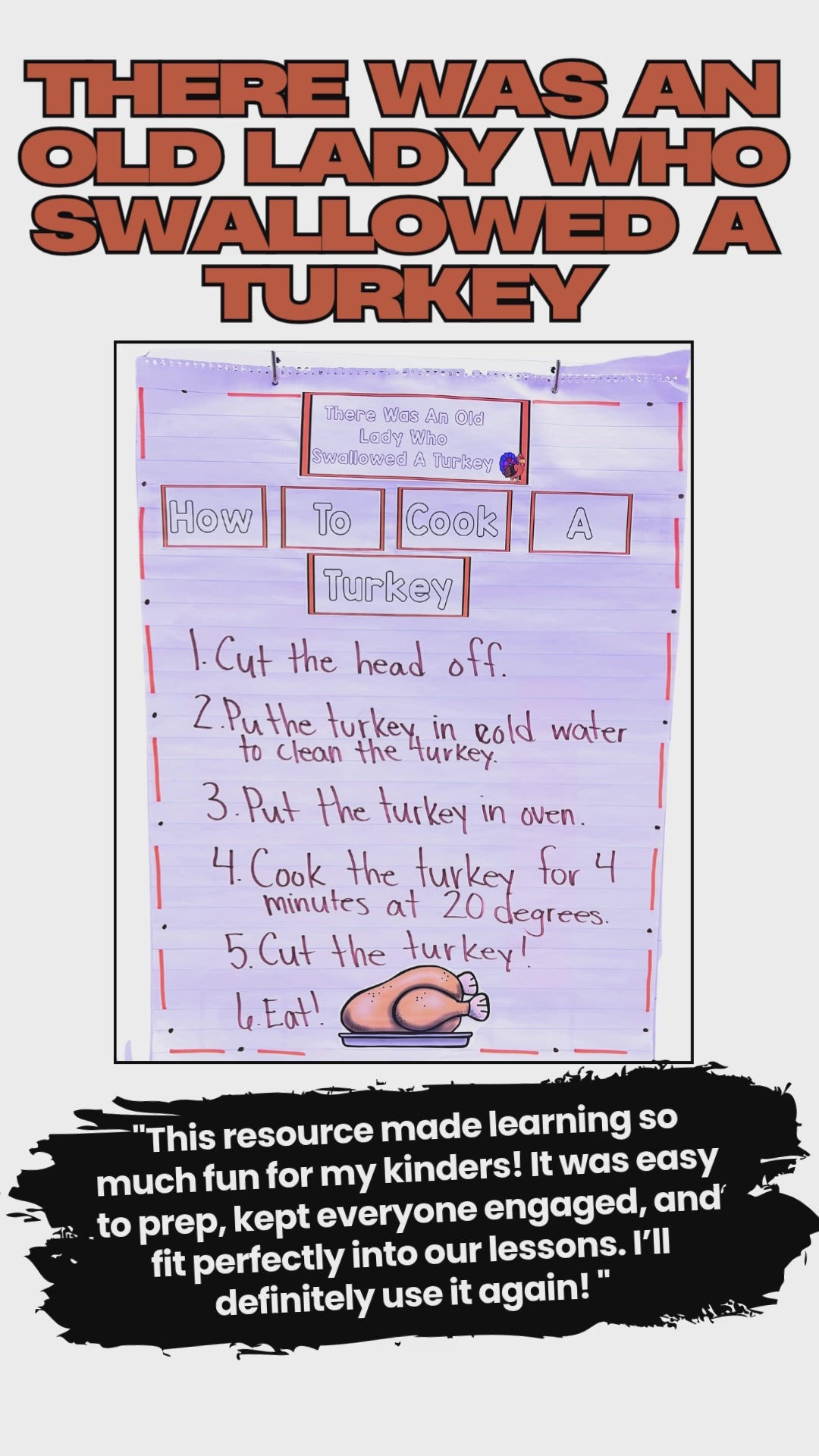 Reading There Was an Old Lady Who Swallowed a Turkey is a classroom favorite, and this resource helps your students dive deeper into the story with meaningful comprehension activities while building vocabulary, sequencing skills, and even turkey-themed math connections.
