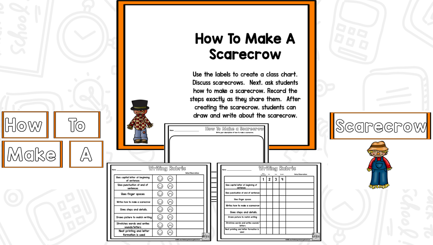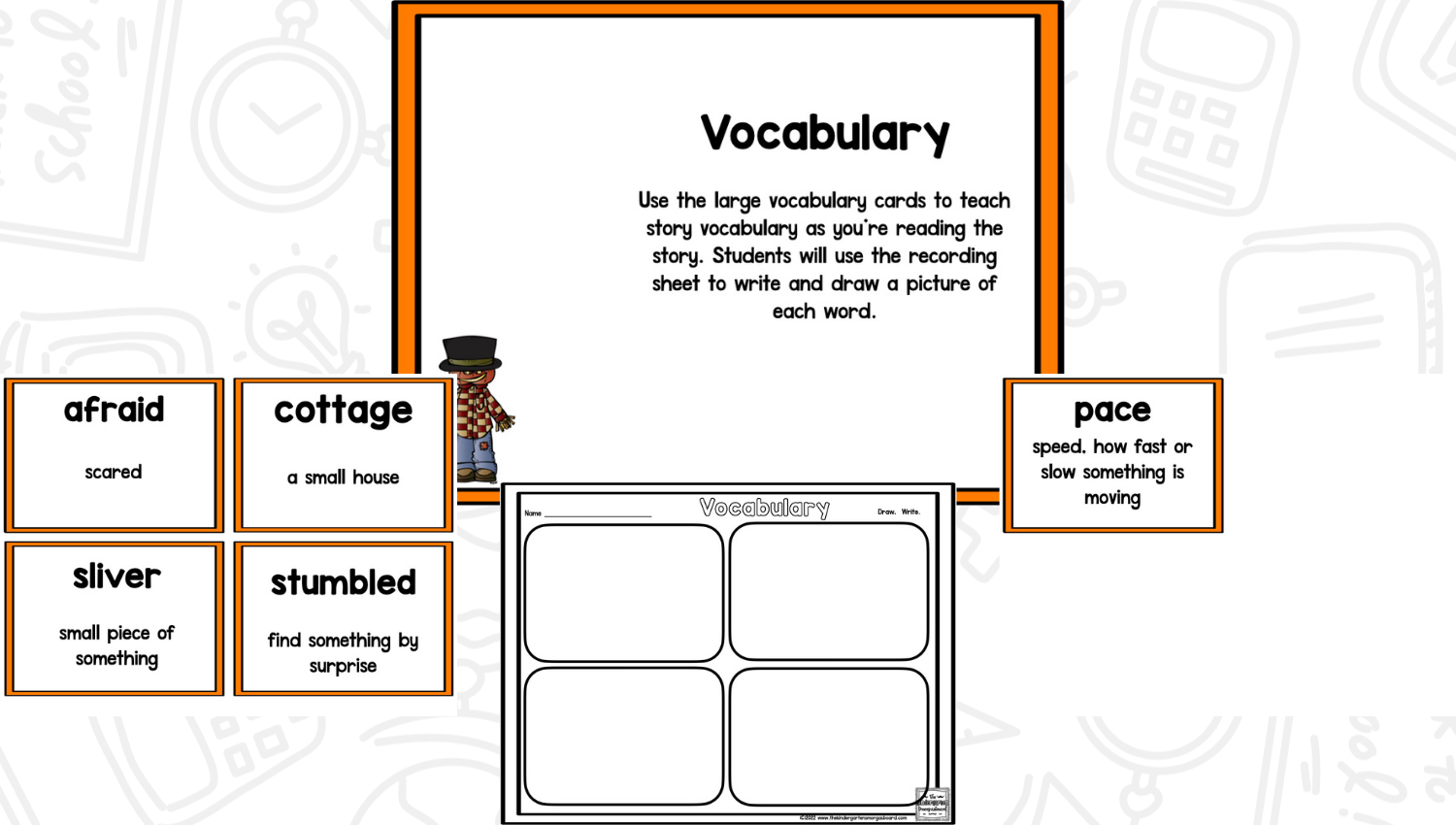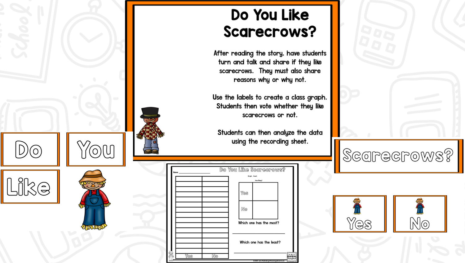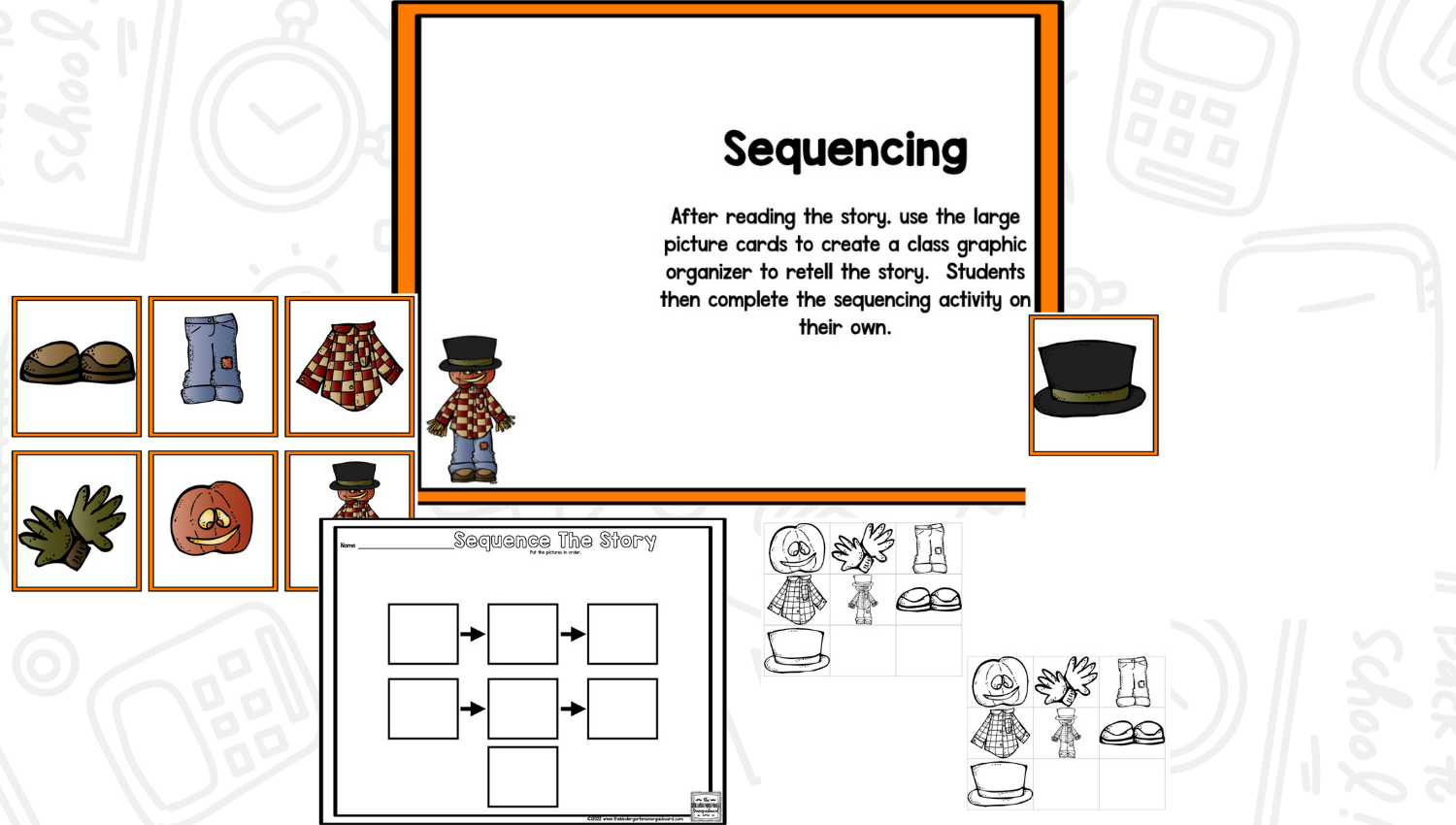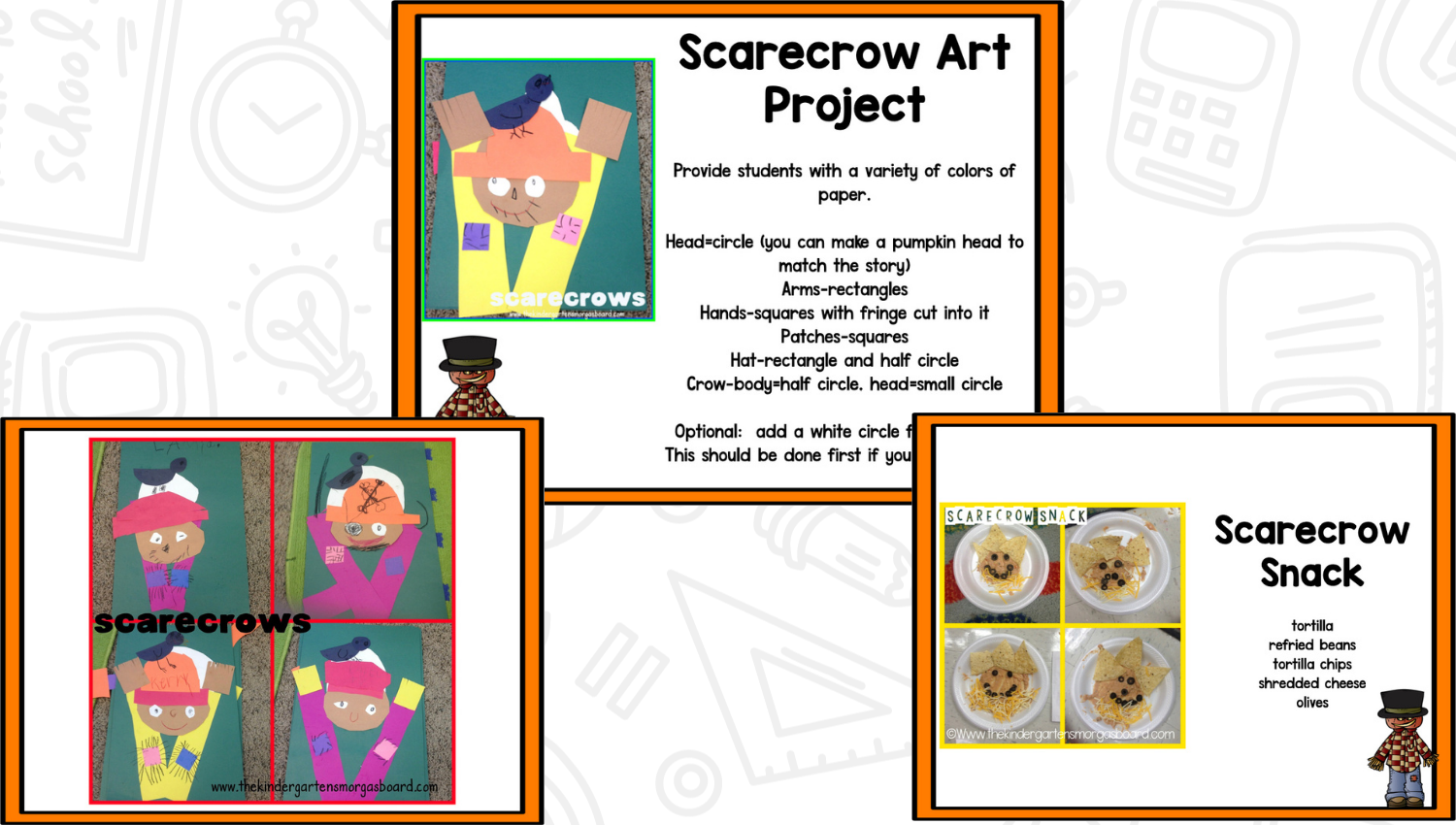 Predictions • Summarizing • Story Map • Sequencing • Real vs. Fantasy • Writing • Vocabulary • Scarecrow Craft • Snack Idea