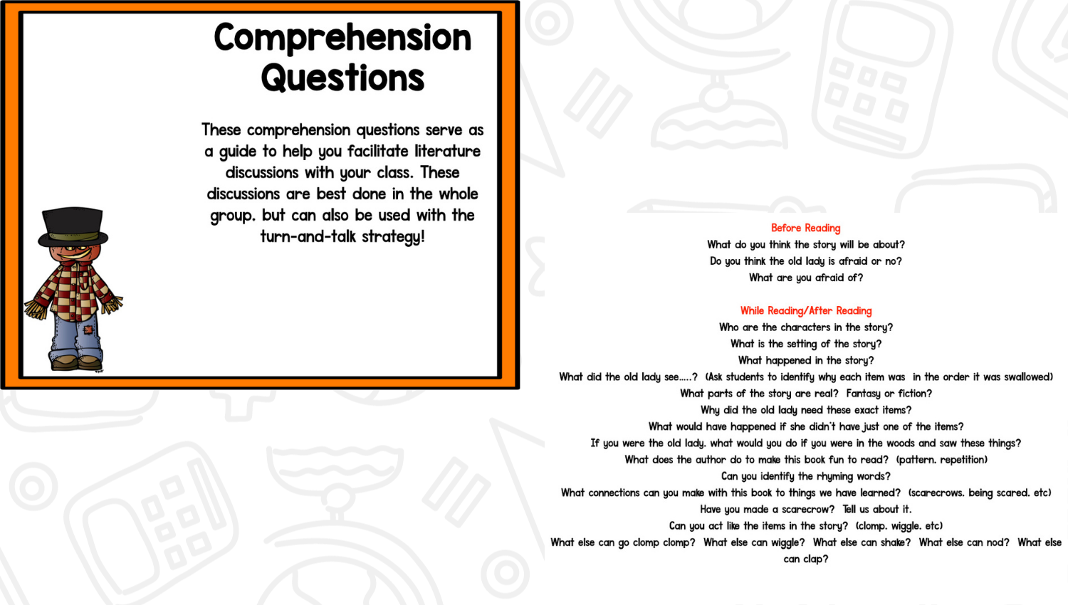Perfect for your October, fall, or Halloween reading lessons, this resource helps students make connections to the story while building vocabulary, confidence, and comprehension skills. From a scarecrow craft and snack to essential questions and graphic organizers, everything is ready for you to grab and go.