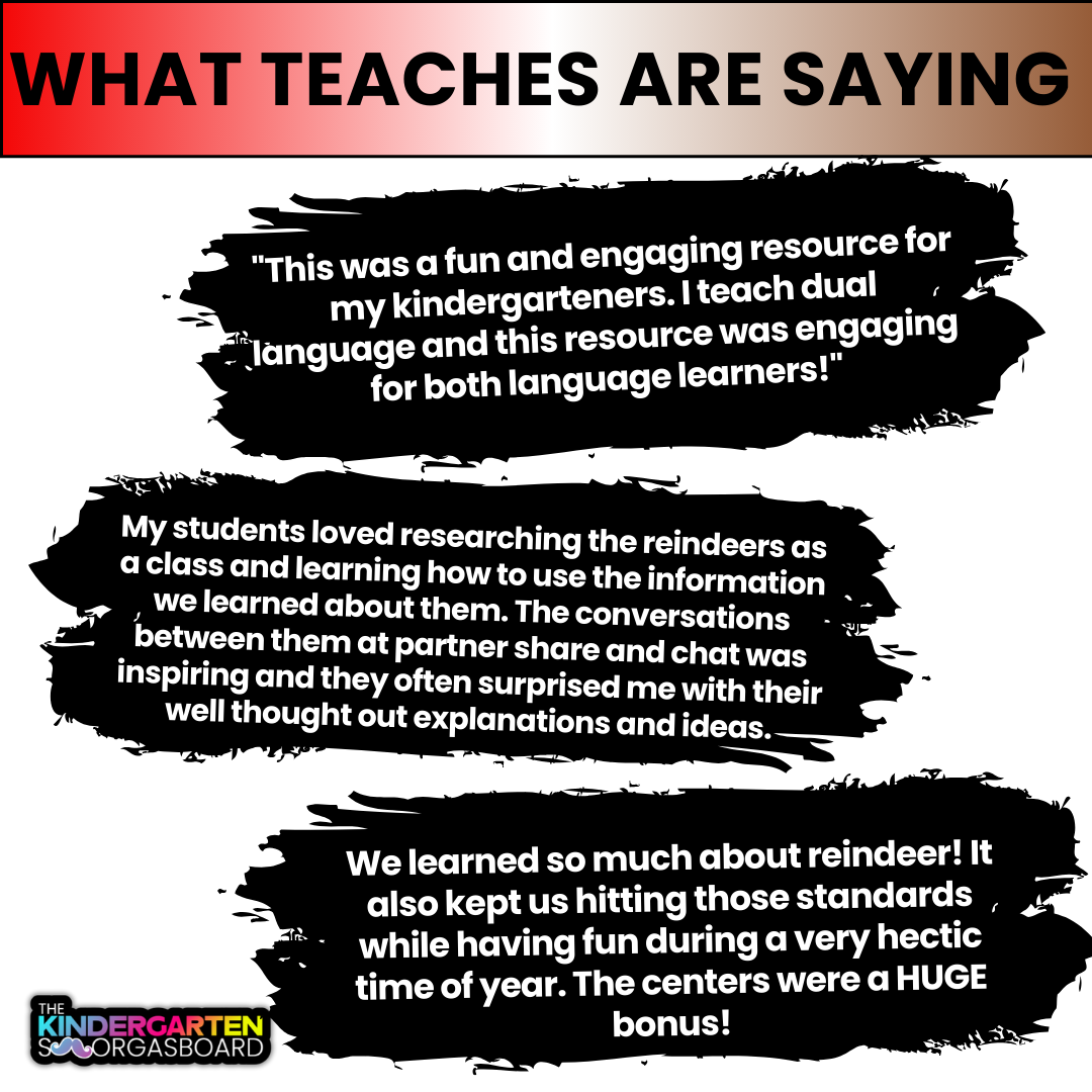 ⭐️⭐️⭐️⭐️⭐️Robin F. says: “The Kindergarten Smorgasboard is the absolute best! My students loved learning about reindeer and writing about reindeer. The organization of this resource is outstanding, and it is easy to prep and use. Fantastic research resource!”