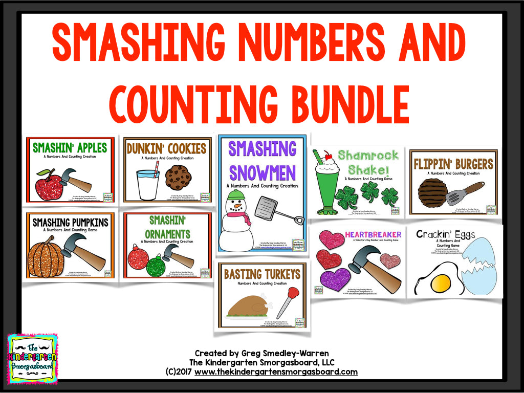 This is a bundle of 10 of our Smashing Numbers and Counting games! Each game is differentiated for numbers and counting to 20. Students can work on number recognition, ten frames, tally marks, and counting how many! Recording sheets are also included!