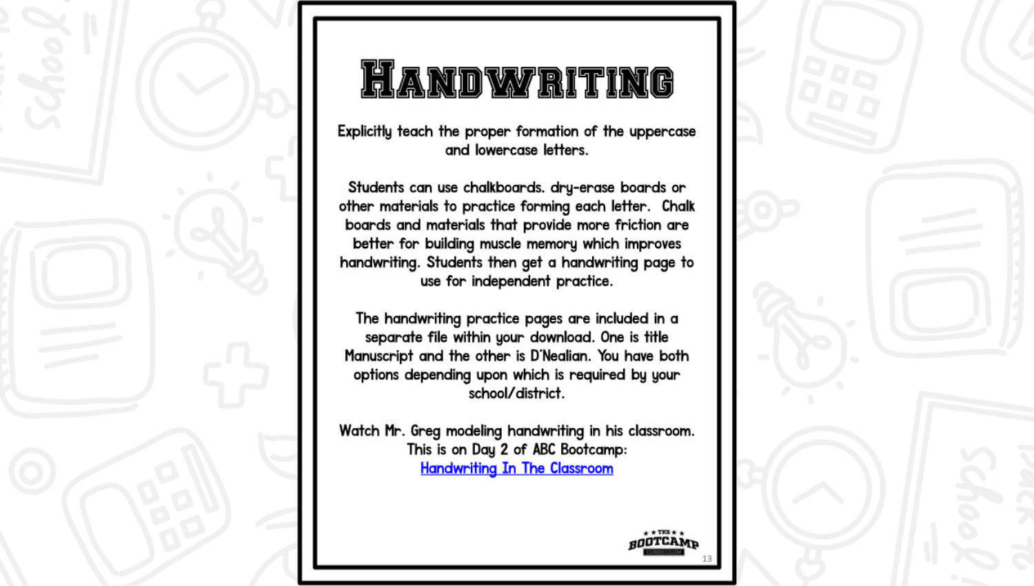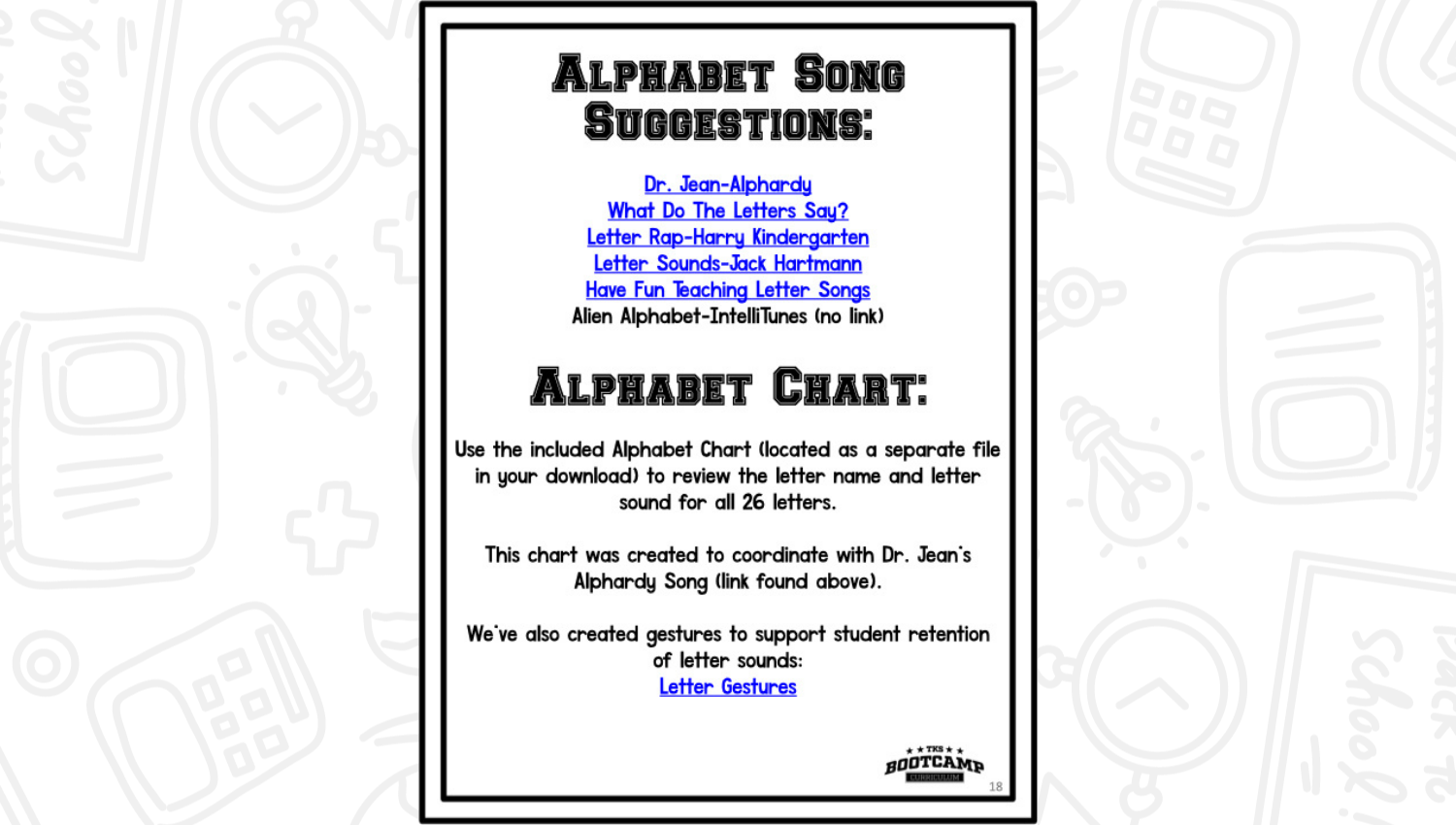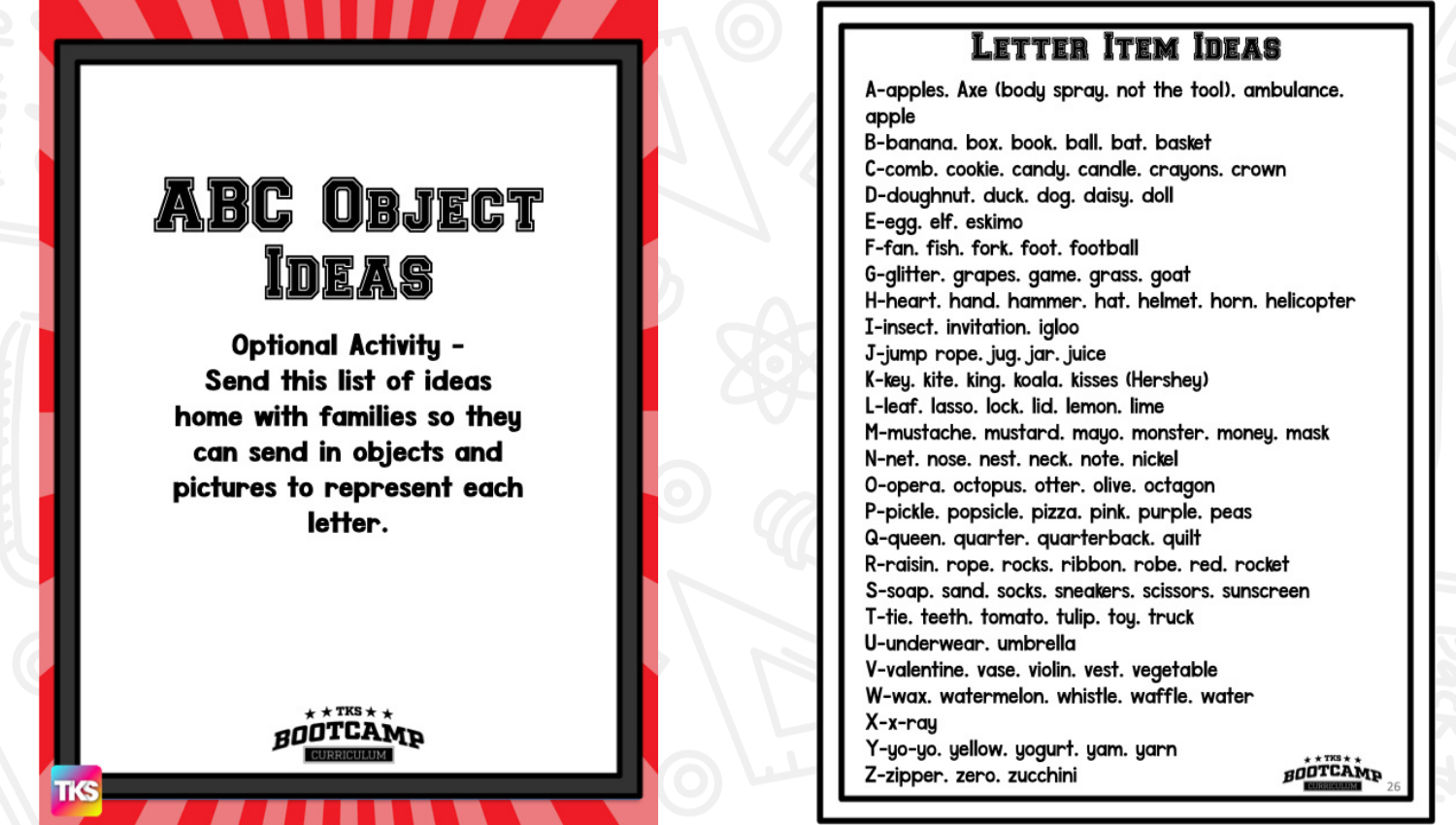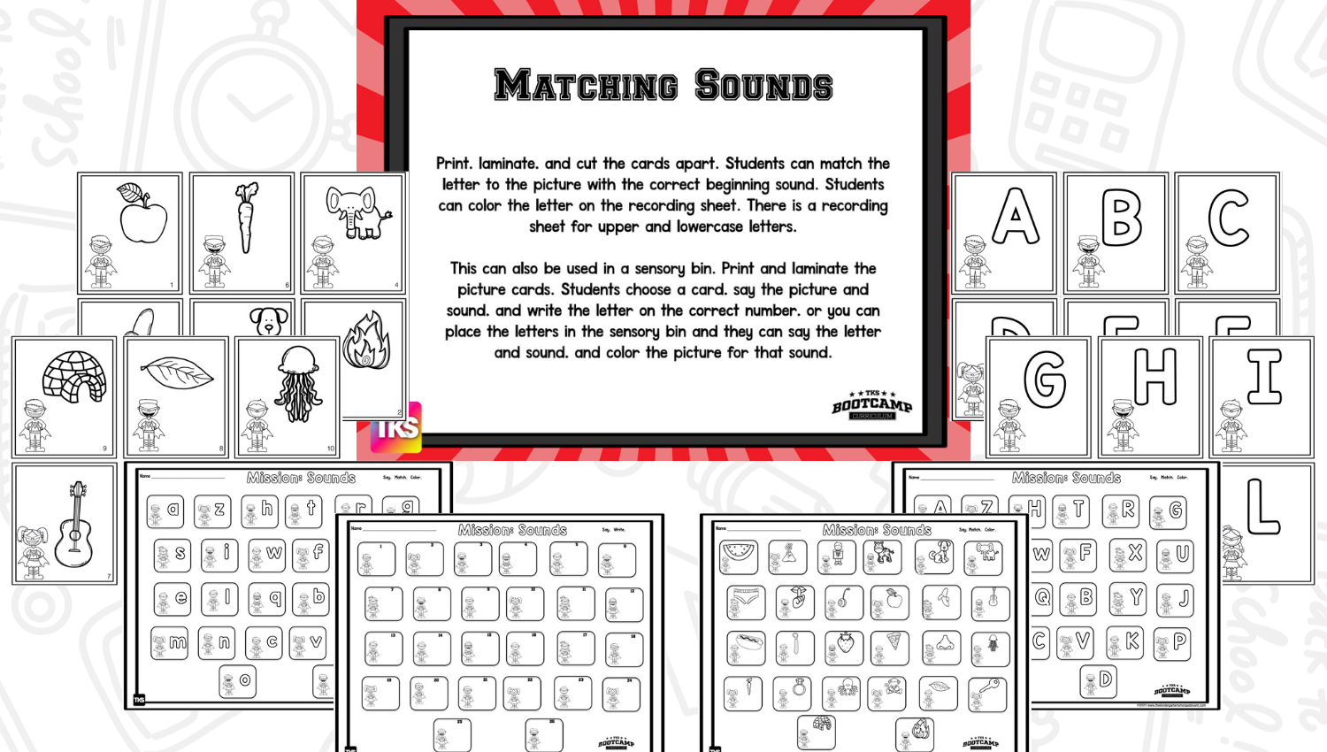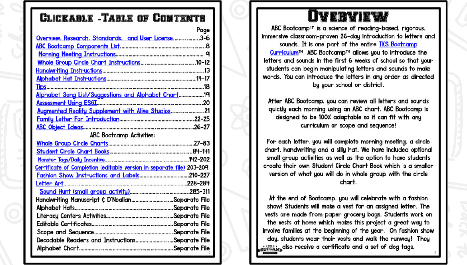 ABC Bootcamp® is available as part of our TKS Bootcamp® Bundle which includes: ABC Bootcamp, Number Bootcamp, Shapes Bootcamp, Blends Bootcamp, Word Family Bootcamp, Vowel Bootcamp, Addition Bootcamp, Subtraction Bootcamp & Vowel Teams Bootcamp. The TKS Bootcamp Bundle is discounted to 25% off the regular price of each product and is available in all 5 themes. CLICK HERE to visit the Bundles.