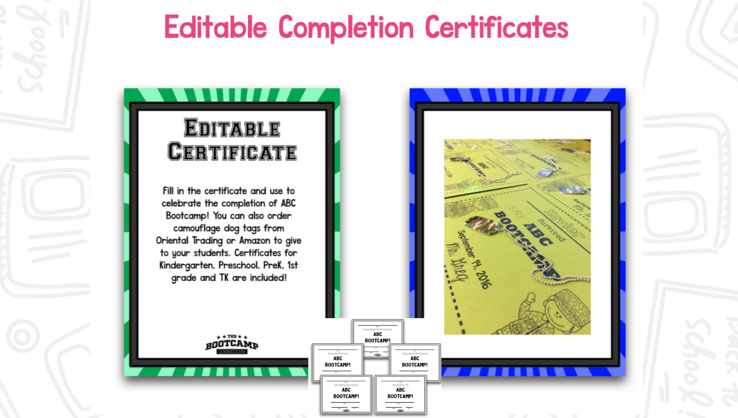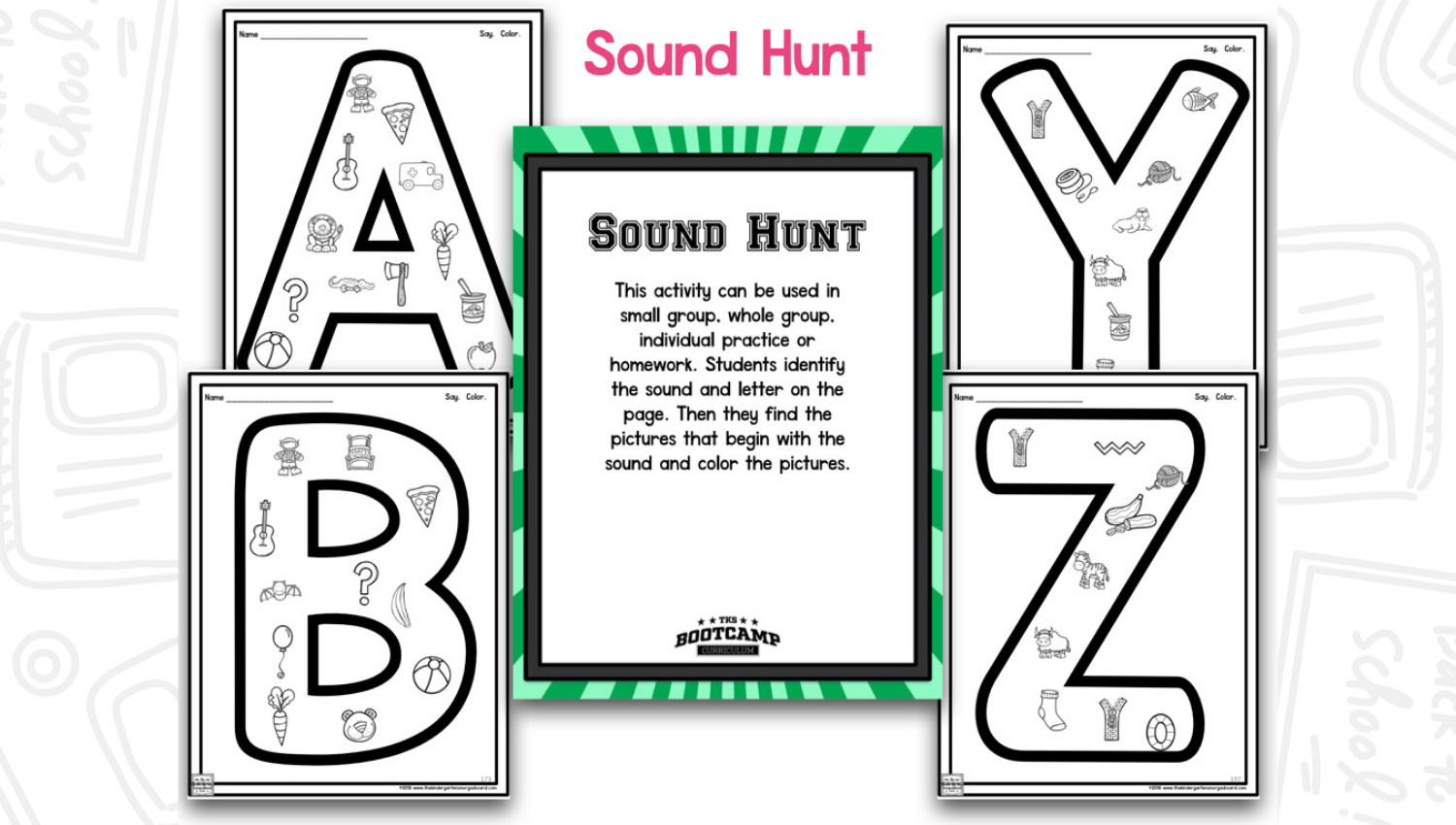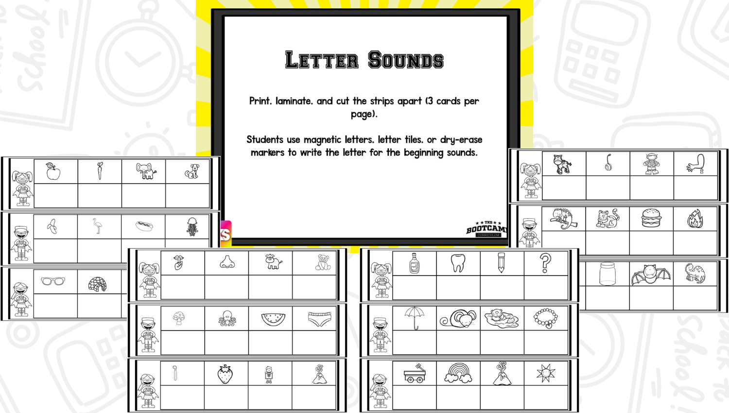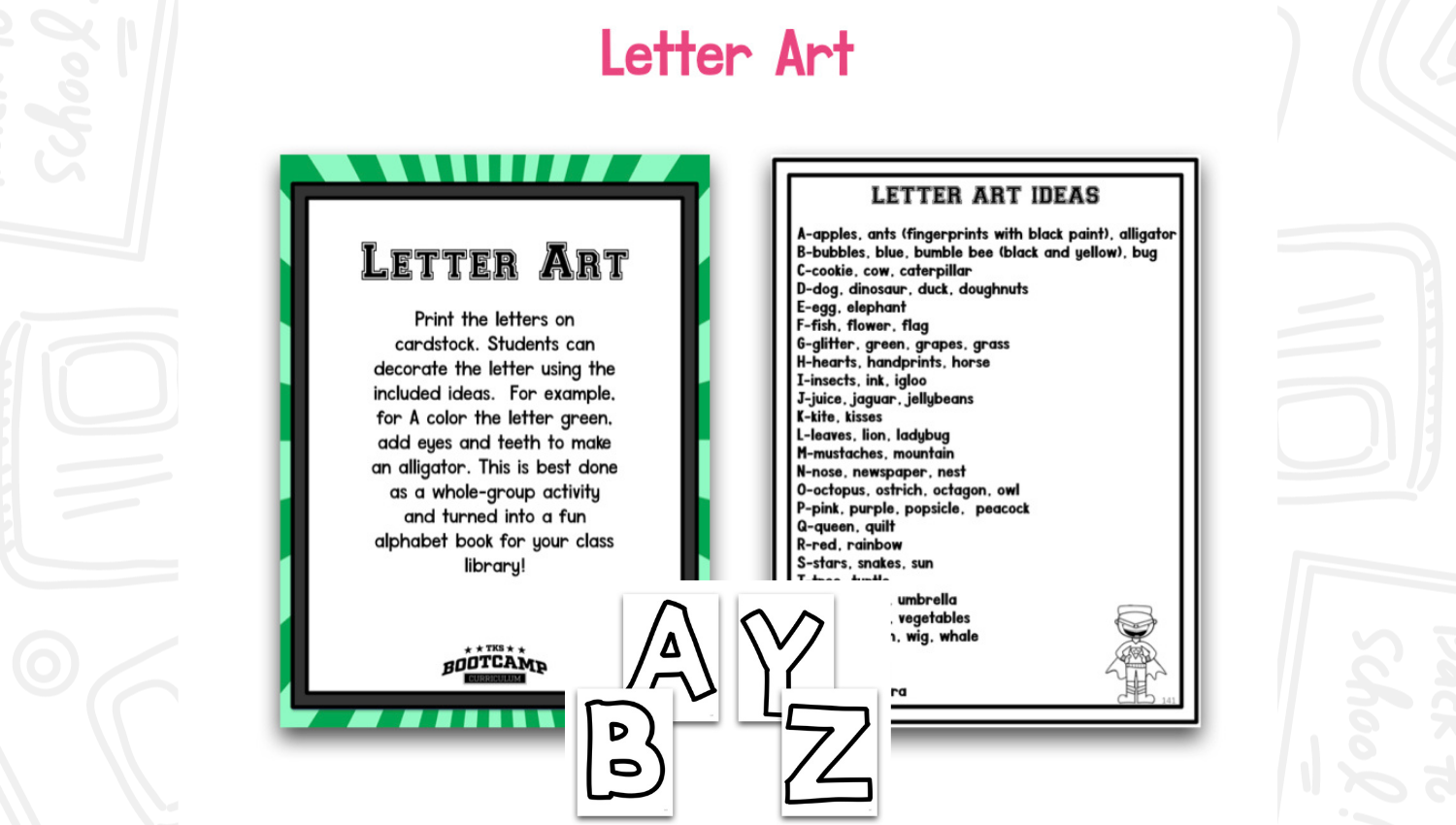 ABC Bootcamp® is only one part of our TKS Bootcamp® Bundle which includes: ABC Bootcamp™, Number Bootcamp, Shapes Bootcamp, Blends Bootcamp, Word Family Bootcamp, Vowel Bootcamp, Addition Bootcamp, Subtraction Bootcamp & Vowel Teams Bootcamp. Our Bundles are discounted to 25% off the regular price of each product and are available in all 5 themes.