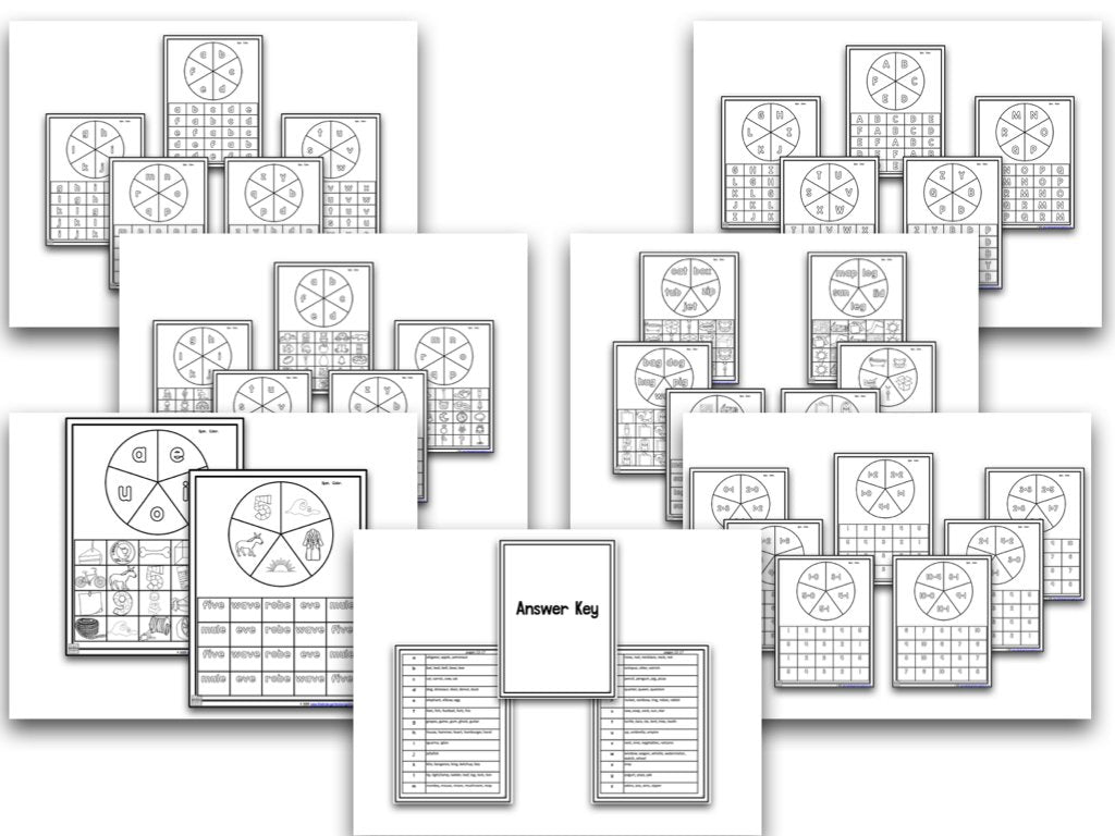 An answer key is included for the activities that require one. To make the spinner, simply use a pencil and paper clip!
