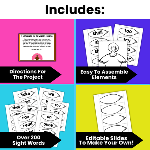 ⭐️⭐️⭐️⭐️⭐️ Allie S. says: “This was a great assessment for my students and they had no idea they were being assessed! They enjoyed practicing their sight words, coloring the feathers, and creating their very own turkeys!”