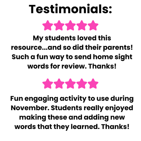 ⭐️⭐️⭐️⭐️⭐️ Jennifer A. says: “Great fun for practicing our sight words! It was great for differentiating as well. Our turkeys were fabulous! Thank you!”