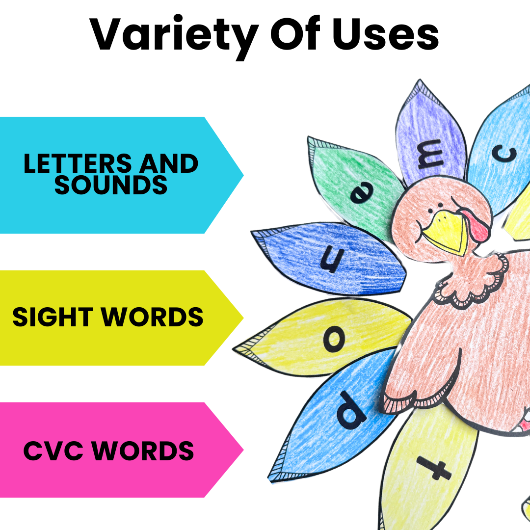 Turkey Thanksgiving Phonics Assessment Project & Activities for Kindergarten
