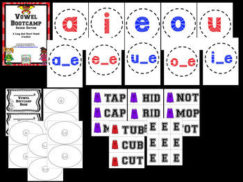 TKS Bootcamp's Vowel Bootcamp contains numerous resources and activities for teaching your students long and short vowels. This creation provides opportunities for building, reading, and writing short and long vowel words. Students will practice changing words to long vowels by adding “e”. The included circle charts provide the perfect introduction to short and long vowels and giving students brainstorming opportunities. Differentiated centers are included for small group work and independent practice.