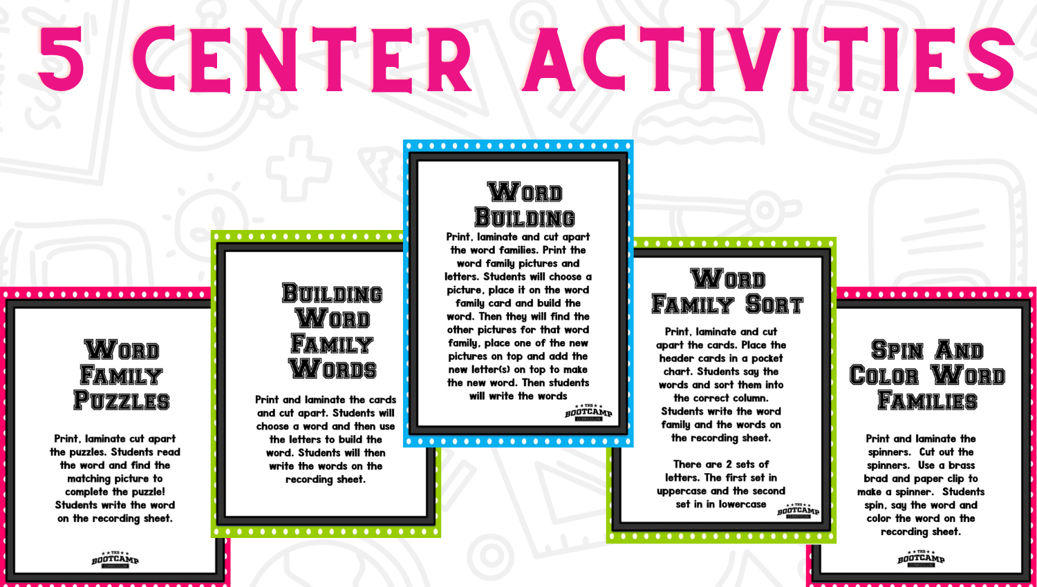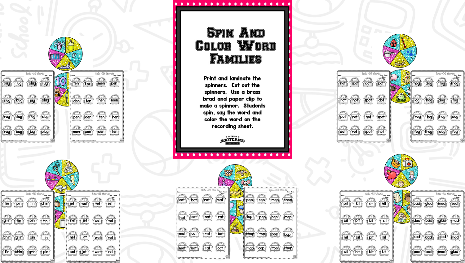 Word Family Bootcamp is available as part of our TKS Bootcamp Bundle which includes: ABC Bootcamp, Number Bootcamp, Shapes Bootcamp, Blends Bootcamp, Word Family Bootcamp, Vowel Bootcamp, Addition Bootcamp, Subtraction Bootcamp & Vowel Teams Bootcamp. The TKS Bootcamp Bundle is discounted to 25% off the regular price of each product and is available in all 5 themes. CLICK HERE to visit the Bundles.