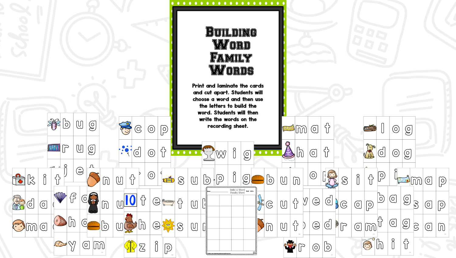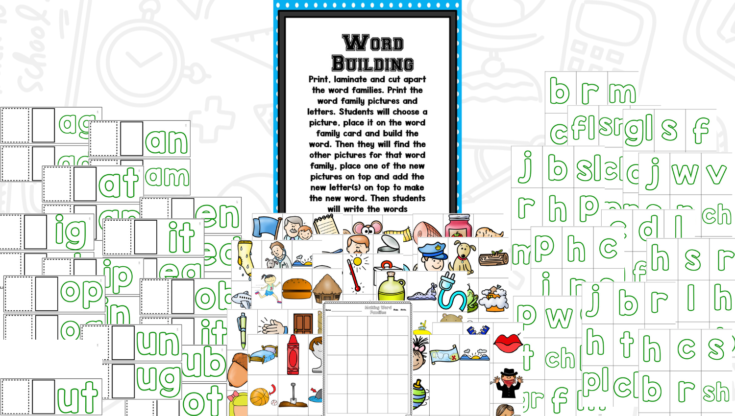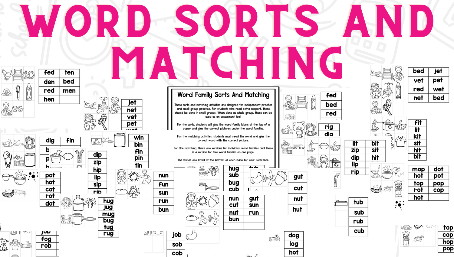 Your students will love brainstorming words for each word family and they will especially love watching you draw the pictures. Students will love using the various activities to practice reading and writing words!
