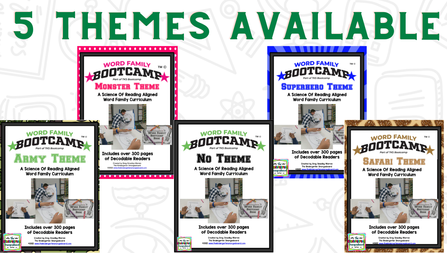 Word Family Bootcamp is available as part of our TKS Bootcamp Bundle which includes: ABC Bootcamp, Number Bootcamp, Shapes Bootcamp, Blends Bootcamp, Word Family Bootcamp, Vowel Bootcamp, Addition Bootcamp, Subtraction Bootcamp & Vowel Teams Bootcamp. The TKS Bootcamp Bundle is discounted to 25% off the regular price of each product and is available in all 5 themes. CLICK HERE to visit the Bundles.
