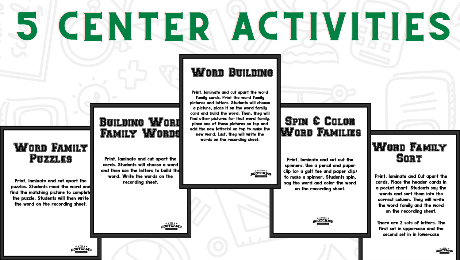 Word Family BOOTCAMP is a developmentally appropriate, rigorous, classroom-proven curriculum for teaching sounds and letters. This resource is completely flexible and will work in any classroom.