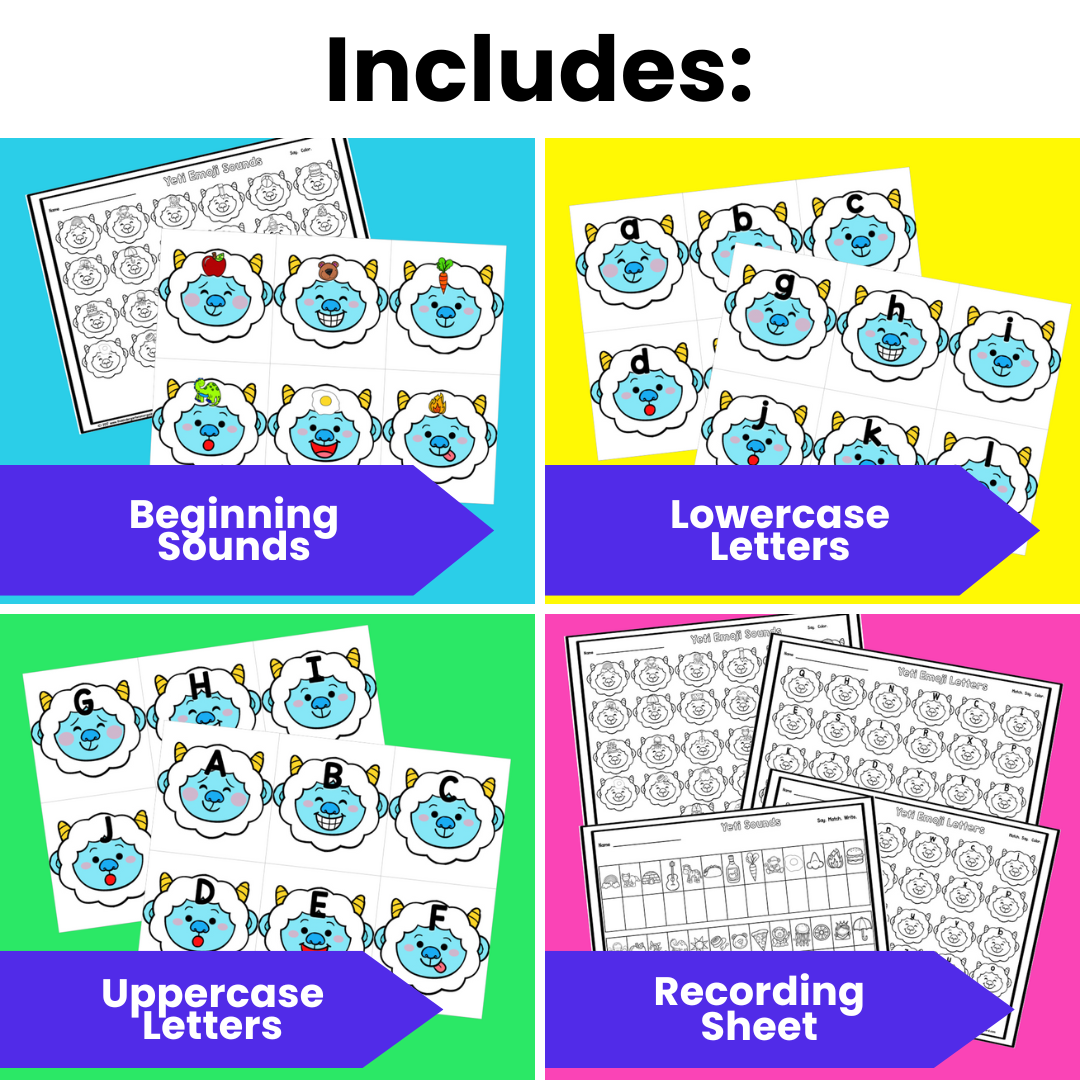 Students will love practicing hearing beginning sounds and letters by matching the yeti emojis. You will love the easy prep and high engagement.